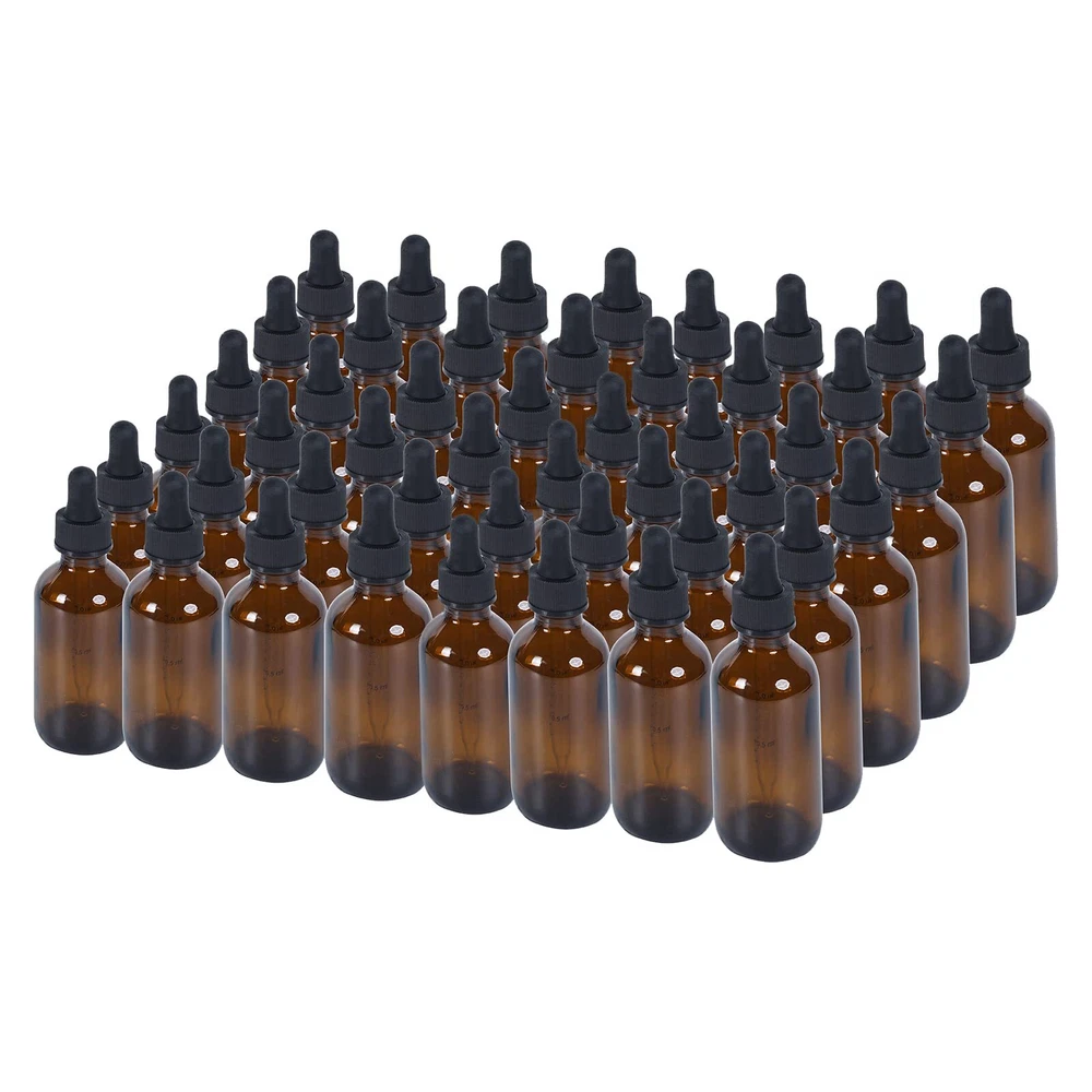 1 oz Dropper Bottle 48 Pack Amber Glass Boston Bottles 30ml with Eye Droppers...
