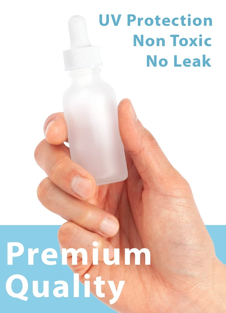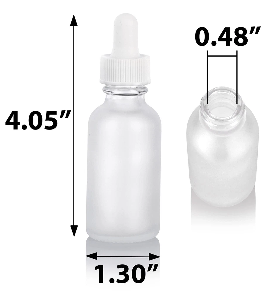 Measurements: Height - 4.05" x Diameter - 1.30". Glass pipette dispenses product precisely, letting you extract the exact numbers of drops needed. These bottles are food grade and ideal for food or beauty uses such as, oil blends (essential, carrier or both), serums, and also for storing industrial and laboratory chemicals. Refillable bottles are easy to clean, reuse, and recycle. Dishwasher safe (bottle only, hand wash closure separately). 1 oz size is TSA compliant and ideal for travel, gym, car, or home use. Measurements: Height - 4.05" x Diameter - 1.30". PROTECT: Our frosted glasses helps prevent damage to your photo sensitive cosmetic products or homemade mix from UV sunlight. SOLID CONSTRUCTION: Squeeze glass pipette dispenses product precisely, letting you extract in the tube the exact numbers of drops needed of liquids. 1 oz size is TSA compliant and ideal for travel, gym, car, or home use. GIFTING: Our upscale professional frosted bottles are ideal for application in the home, kitchen, bath, decor, gifts, and resell. Refillable bottles are easy to clean, reuse, and recycle. Dishwasher safe (bottle only, hand wash closure separately to preserve integrity of top fit).