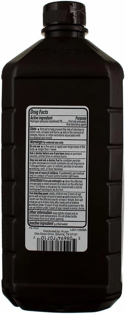 Hydrogen Peroxide Antiseptic Solution 32 Fl. Oz Swan 3% Hydrogen Peroxide is a topical solution USP, a first aid antiseptic, and oral debriding agent that can be used for treatment of minor cuts and abrasions to prevent risk of infection. Can be used as a gargle or rinse, promoting new tissue growth while moisturizing the treated area as it heals. This solution stops 99.9% of bacteria immediately and is a temporary relief of pain and itching. Comes in a ready to use 32 oz. bottle.