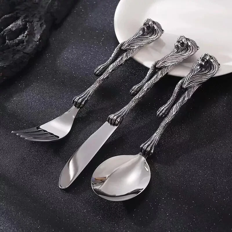 1 set Stainless Lion Spoon Fork Knife Dinnerware Set Tableware Gift