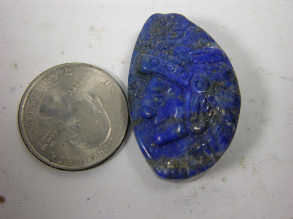 All 100% carving from natural rough, there is ONLY ONE (1) carving in this listing , photos show different angles of the specimen, you are bidding on exactly what seen in the photos, PHOTOS SHOW THE ACTUAL SPECIMEN, NOT ACTUAL SIZES, buyers should READ AND UNDERSTAND SIZES, view all PHOTOS before BUYING the carving. We put a QUARTER in a photo for comparing the sizes of the carving. ID# Lapis Indian 10 Quantity : 1 Gem Type : Lapis Lazuli Maximum Size : 36.00mm X 23.00mm X 11.00mm or 1 3/8 in X 7/8 in X 7/16 in - Note 1 inch = 25.40mm Clarity : Opaque Shape : as seen Treatment : None Color : Multi-color as seen Total Weight : 99.50ct or 19.90g Original : Afghanistan Shipping & Handling : $5.00, all other countries $18.00 (TRACKING WITHIN THE US ONLY), combine shipping with highest shipping + $1.00 for EACH next winning item. ATTENTION : if you are bidding on multiple auctions, please DO NOT pay until you have finished with the last listing. I will allow 7 days between purchases or up to 40 items per invoice, after that you will have to start a new shipment and if you pay for each item or invoice separately, I will not combine shipping after paying, please ask for an invoice before paying. Payment : Accept credit cards through Paypal, will wait 7 days for payment or re list the item. Thank you for viewing & bidding from Vietrocks