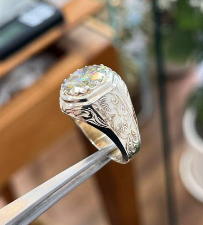 $ 258.065 Carat Moissanite Sterling Silver 925 Handmade Mens Ring, Moissanite Ring