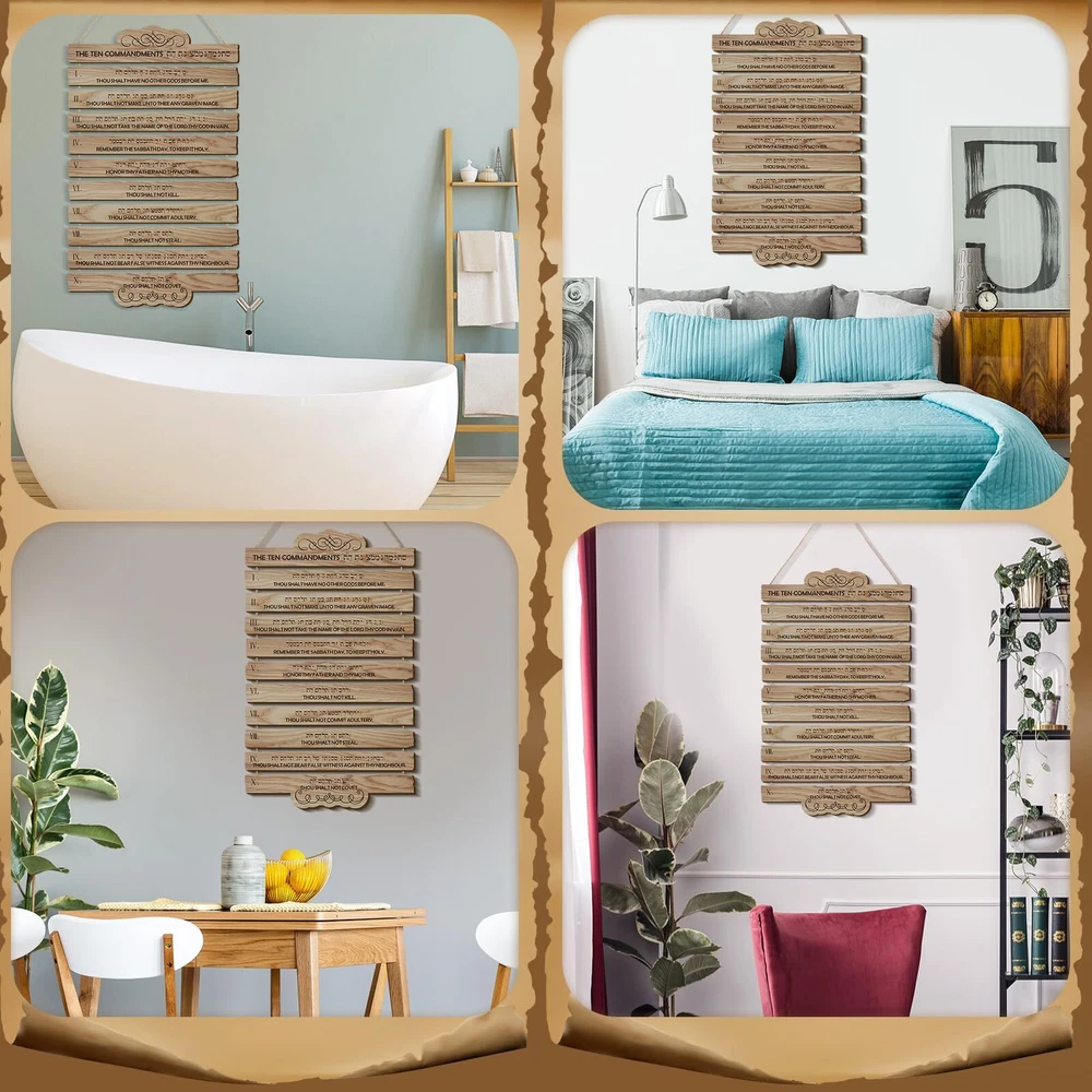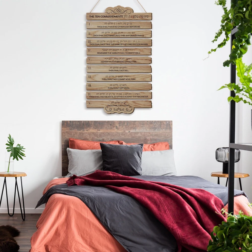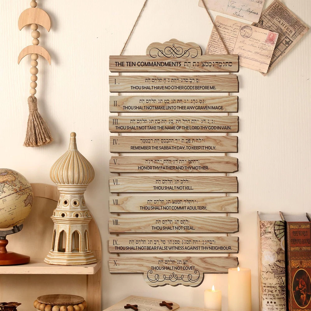 10 Commandments Christian Wall Art Wooden Bible Verse Wall Decor Hanging Reli...