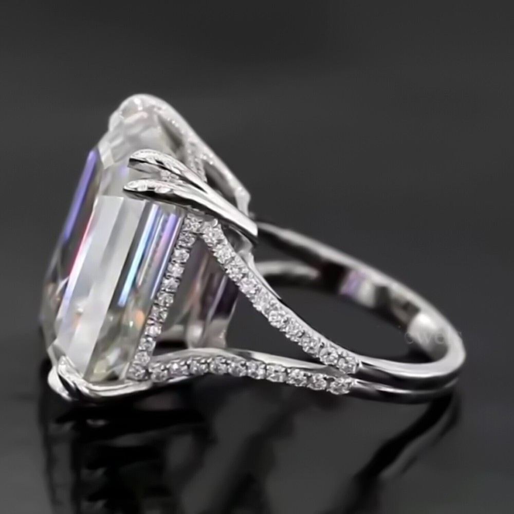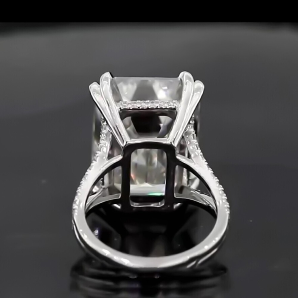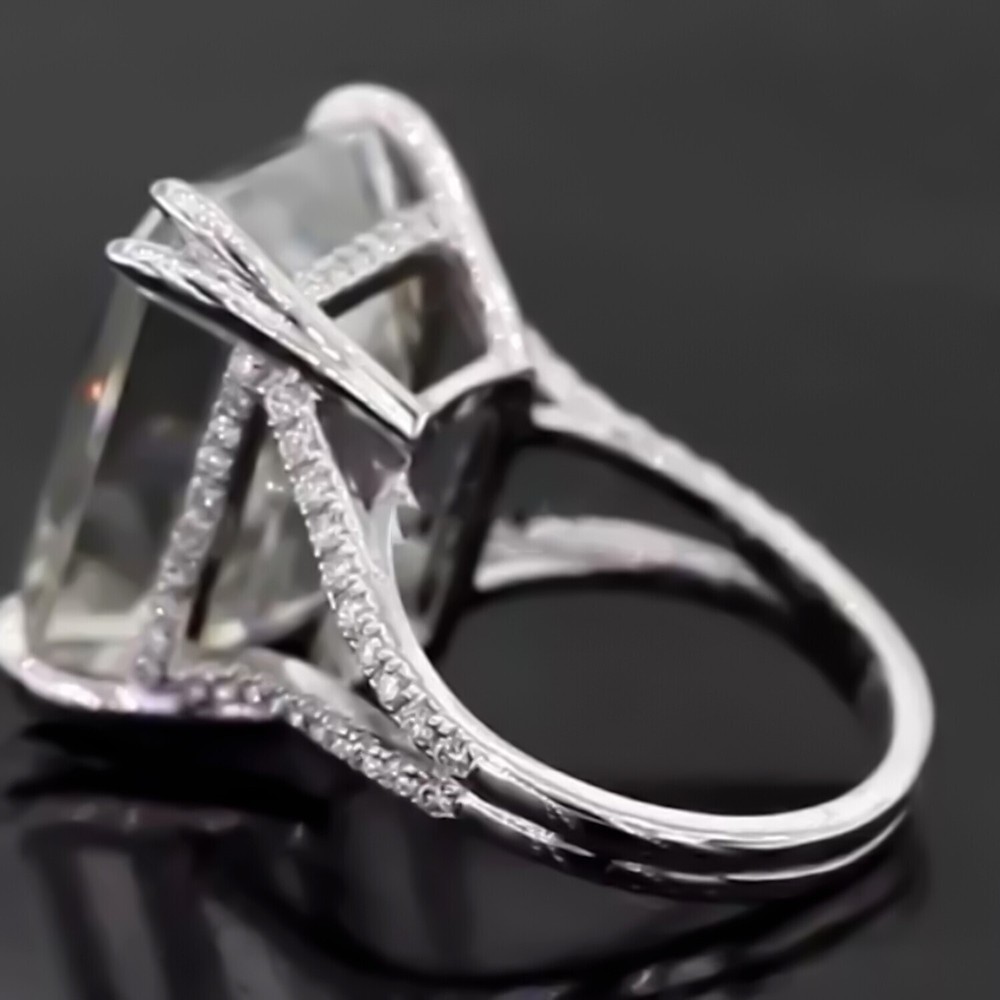 16.10 Ct Asscher Cut White Diamond Solitaire Ring In 925 Silver Certified