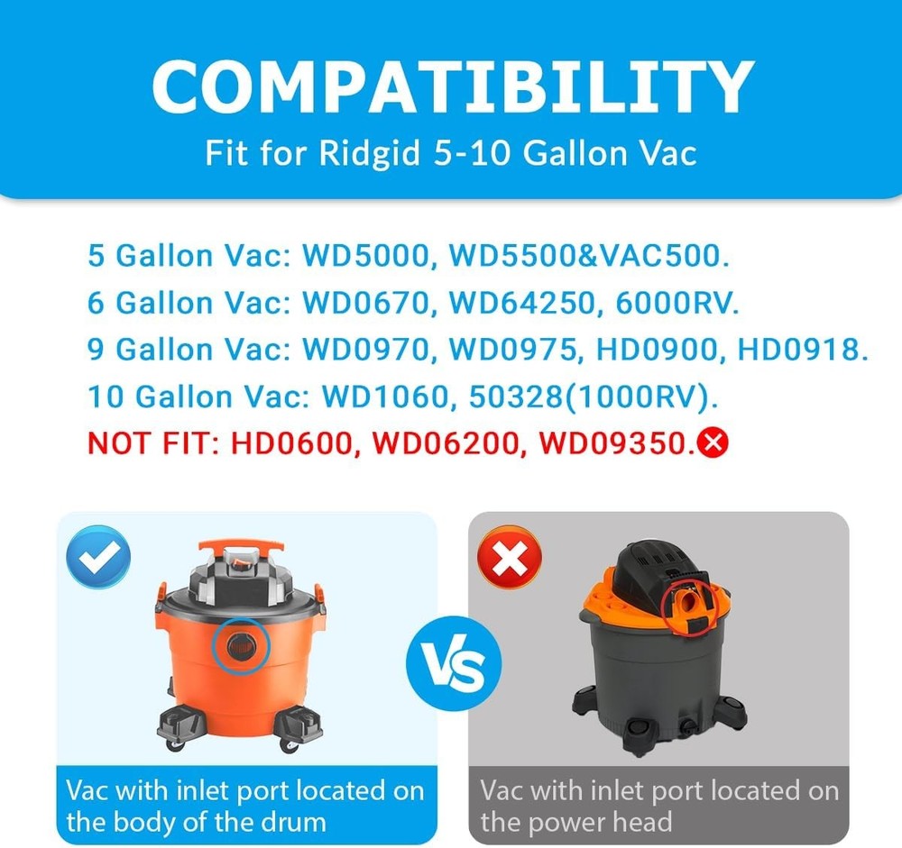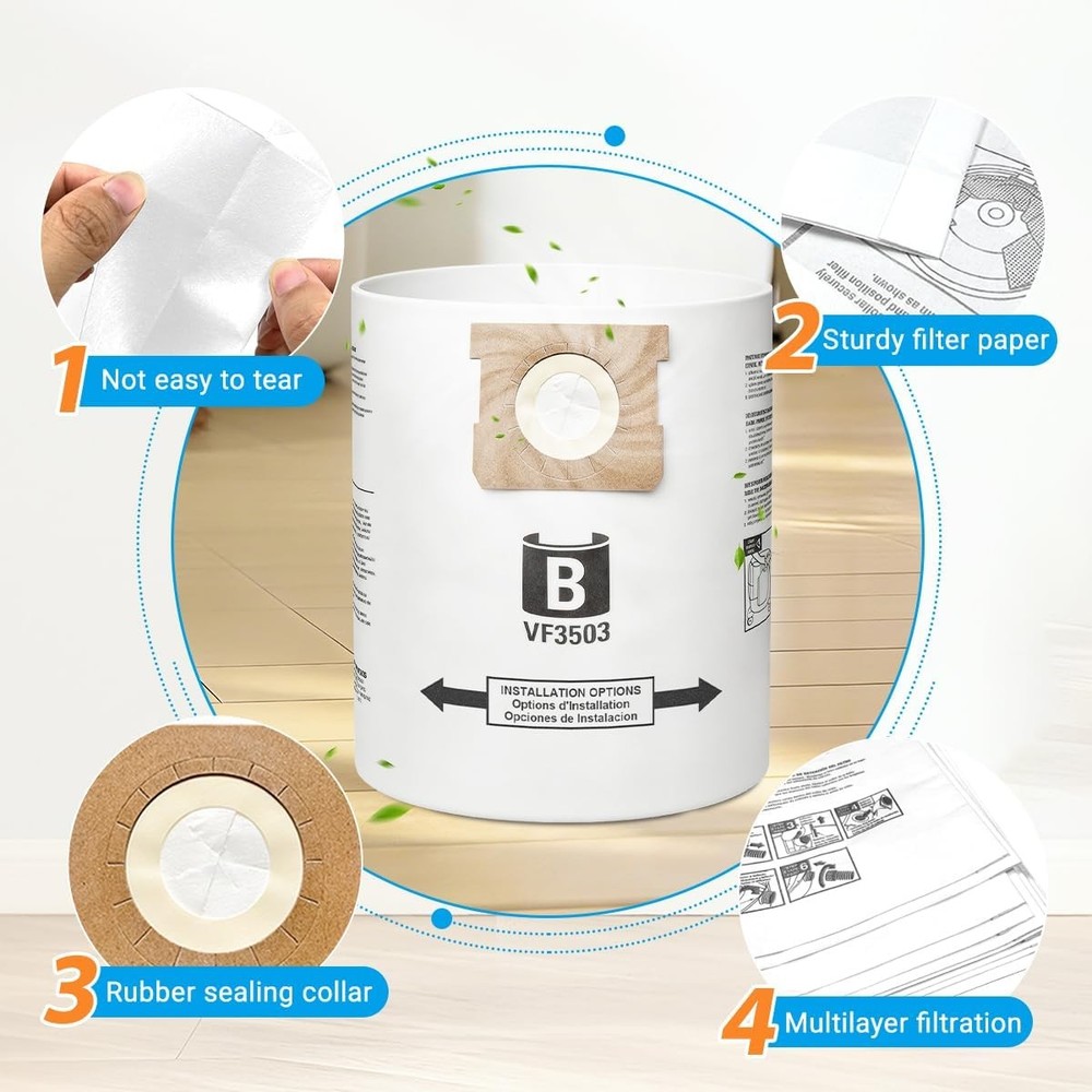 About this item COMPATIBILITY: Fit for ridgid VF3503 vacuum bags. Compatible with Ridgid 5 gallon wet/dry vac: WD5000, WD5500&VAC5000; 6 gallon vac: WD0670, WD64250, 6000RV; 9 gallon vac: WD0970, WD0975, HD0900, HD0918; 10 gallon vac: WD1060, 50328(1000RV). Size B, VF3503, high-efficiency dust bags.( πππ π ππ: ππππππ, πππππππ, πππππππ.) 2-PLY FILTRATION: VF3503 shop vac bags are made of 2-layer high efficiency filter material, lightweight, compact, not easy to tear. Effectively capture household garbage, sawdust, dirt, made for dry pickup only. WaveWhiz2 Your Best Online Business Partner 10 Gallon For Ridgid Shop Vac bags Size B VF3503 Dust Collection Vacuum Bags About this item COMPATIBILITY: Fit for ridgid VF3503 vacuum bags. Compatible with Ridgid 5 gallon wet/dry vac: WD5000, WD5500&VAC5000; 6 gallon vac: WD0670, WD64250, 6000RV; 9 gallon vac: WD0970, WD0975, HD0900, HD0918; 10 gallon vac: WD1060, 50328(1000RV). Size B, VF3503, high-efficiency dust bags. ( πππ π ππ: ππππππ, πππππππ, πππππππ.) 2-PLY FILTRATION: VF3503 shop vac bags are made of 2-layer high efficiency filter material, lightweight, compact, not easy to tear. Effectively capture household garbage, sawdust, dirt, made for dry pickup only. EASY CLEANING: Rubber sealing collar can lock the dust inside, prevent dust from spilling, keep inside of the vacuum drum clean, no need to clean the vacuum again. VALUE PACK: 10 Pack VF3503 Size B shop vac bags replacement for ridgid vacuum bags 5-10 gallon. Works like originals, but half price, save your money. Item Specifics MPN Does Not Apply Brand Unbranded Set Includes 10 pcs Vacuum Cleaner Bag Compatible Brand Universal Compatible Model For Size B VF3503 Type Vacuum Cleaner Bags Material Paper Payment Payment option: eBay payment. Shipping 1. Domestic Shipping: The item will be delivered within 3 to 5 business days. Handling time is 1 day 2. International shipping: Item will be shipped from our warehouse in Ohio, US. Transportation time is 15 to 30 days. There are 2 optional shipping services. Please check the "Shipping and Payment" part for reference. 3. Buyer will pay for return for buyer's reason. Returns 1. We offer buyers the option for replacement, exchange, or payment of the difference in price to exchange an item for another model 2. We offer Money back Guarantee. We make refunds for DOA (Damaged or dead on arrival) items, or items damaged or lost in transit 3. DOA: For items damaged or dead on arrival, the buyer is required to notify us through the messaging platform on eBay not later than 24 hours upon receipt of the goods. We will refund buyer or exchange the item based on buyer's request. 4. Our 60 days exchange policy is not common among sellers Contact Us Contact us now via eBay Message and you will get a same day response. Feedback Our number one goal is to be a 100% positive feedback partner with eBay. After completing your order we ask that you please leave us feedback. Positive feedback with 5 star ratings is much appreciated! If for any reason you are not content with your purchase, please DO NOT leave negative feedback. Prior to opening a case in the resolution center or opening a return request , simply email us explaining the issue you are experiencing and we will be more than willing to assist you and resolve the problem. WaveWhiz2 Your Best Online Business Partner DESCRIPTION PAYMENT SHIPPING RETURN POLICY CONTACT US Shop Category Store Home Other Hot Item New in Sealed Box Google Pixel 6a 5G 128/GB USA Unlocked Smartphone USD 233.99 Apple iPhone 8 Plus 64/256GB Unlocked Smartphone ALL COLORS !New Sealed! USD 182.99 Brand New in Box Samsung Galaxy Z Fold 7 1TB F966U 5G USA Unlocked AI Smartphone USD 1319.99 Brand New in Box Samsung Galaxy S24 Ultra 1TB G928U 5G USA Unlocked Smartphone USD 879.99 New *UNOPENDED* Apple iPhone 7 Plus Verizon Unlocked Smartphone/128GB/RED HK USD 181.99 Picture New List Item Brand New in Box Samsung Galaxy Z Fold 7 1TB F966U 5G USA Unlocked AI Smartphone USD 1319.99 Brand New in Box Asus Zenfone 12 Ultra 512GB 16GB USA Unlocked Smartphone US USD 1099.99 Brand New in Box Sony Xperia 1 V 512GB 12GB RAM USA Unlocked Smartphone US USD 1099.99 Brand New in Box Samsung Galaxy S24 Ultra 1TB G928U 5G USA Unlocked Smartphone USD 879.99 Brand New Samsung Galaxy S25 Ultra 1TB 12/16GB G938U 5G USA Unlocked Smartphone USD 1143.99 Help & Info Payment Policy Shipping Policy Return Policy FAQ About Us 10 Gallon For Ridgid Shop Vac bags Size B VF3503 Dust Collection Vacuum Bags About this item COMPATIBILITY: Fit for ridgid VF3503 vacuum bags. Compatible with Ridgid 5 gallon wet/dry vac: WD5000, WD5500&VAC5000; 6 gallon vac: WD0670, WD64250, 6000RV; 9 gallon vac: WD0970, WD0975, HD0900, HD0918; 10 gallon vac: WD1060, 50328(1000RV). Size B, VF3503, high-efficiency dust bags. ( πππ π ππ: ππππππ, πππππππ, πππππππ.) 2-PLY FILTRATION: VF3503 shop vac bags are made of 2-layer high efficiency filter material, lightweight, compact, not easy to tear. Effectively capture household garbage, sawdust, dirt, made for dry pickup only. EASY CLEANING: Rubber sealing collar can lock the dust inside, prevent dust from spilling, keep inside of the vacuum drum clean, no need to clean the vacuum again. VALUE PACK: 10 Pack VF3503 Size B shop vac bags replacement for ridgid vacuum bags 5-10 gallon. Works like originals, but half price, save your money. Item Specifics MPN : Does Not Apply Brand : Unbranded Set Includes : 10 pcs Vacuum Cleaner Bag Compatible Brand : Universal Compatible Model : For Size B VF3503 Type : Vacuum Cleaner Bags Material : Paper Payment Payment option: eBay payment. Shipping 1. Domestic Shipping: The item will be delivered within 3 to 5 business days. Handling time is 1 day 2. International shipping: Item will be shipped from our warehouse in Ohio, US. Transportation time is 15 to 30 days. There are 2 optional shipping services. Please check the "Shipping and Payment" 