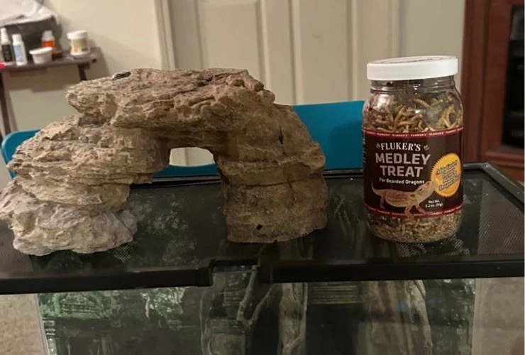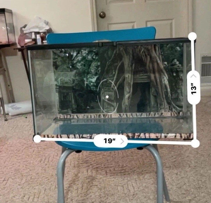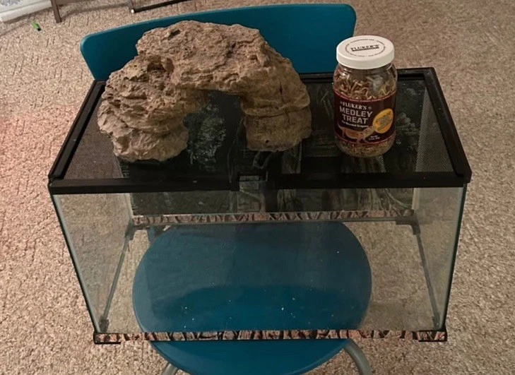 This 10-gallon tank is perfect for reptiles or fish—versatile, spacious, and in flawless condition. The included mesh top slides smoothly, and the rock accessory looks brand-new after thorough cleaning. The lightly used medley treats are a nice bonus. Everything feels fresh and well-maintained, just like a store-bought setup. Great value for a high-quality terrarium/aquarium!