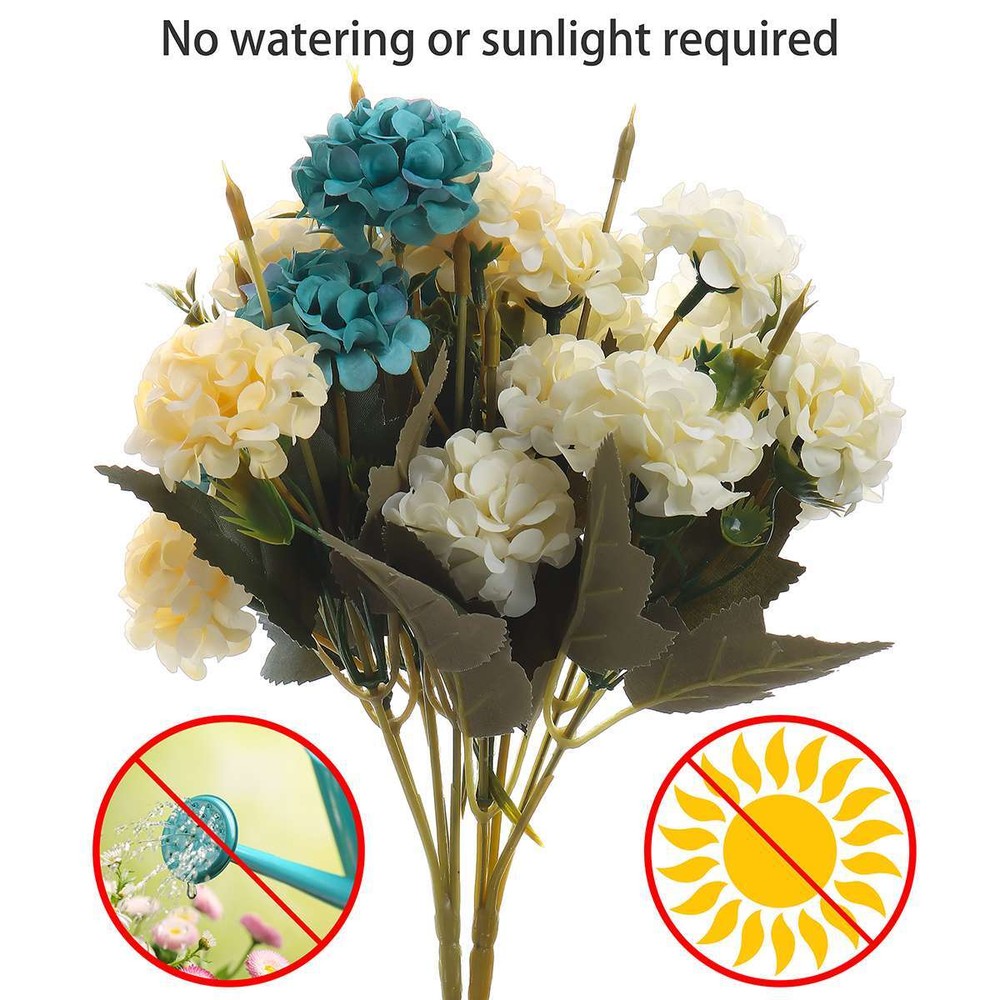 Product Description Specifications: Material: Cloth + Plastic Optional Color: White, Pink, Orange, Blue, Purple Length: 27cm / 10.6in Width: Approx. 20cm / 7.9inc Flower Size (W*H): Approx. 5*3cm / 2*1.2in Type: Artificial Hydrangea Spray Features: · Elegant Artificial Hydrangea Flower Spray: Captivating artificial hydrangea flower spray of a classy yellowish hue, appears like flowers in the old painting and pleases your eyes. · 10 Beautiful Flower Heads: The artificial hydrangea spray has 5 branches and each branch has 2 beautiful flower heads. · Vivid Green Leaves: The leaves of the artificial hydrangea flower are vivid and lovely. · Gorgeous Flower Decoration: It is a great decoration for your home, bedroom, study, living room or office for providing more loveliness to your life. You can have it for DIY stunning flower arrangement. · Easy to Maintain & Durable: The artificial hydrangea flower is low-maintenance and long lasting, without need of watering or sun. · 5 Color Options: It is available in 5 pretty colors for you to choose from. Notes: * Due to effect of light, camera and monitors, the item’s real color may be slightly different. * Allow slight dimension difference due to manual measurement. * Thank you for your kindly understanding. Package Includes: 1/2/5 PCS Artificial Flower (Others are NOT included) Payment Shipping Returns Feedback Contact US PayPal is easy and safe, and we only accept PayPal payment. Please do not hesitate to contact us if you have any questions of payment procedures. Sales Tax: California residents, please add 8.75% for sales tax. Items dispatched to buyer's PayPal confirmed address from Monday to Saturday (Sunday & Holiday excluded) after payment has been received. Please check your shipping address carefully before checkout. If you want to change the address, pls kindly contact us through ebay message within three hours after payment. Otherwise, any change information may be disregarded once dispatched. Postage includes packaging material, shipping label, handling fee and so on. Do not provide local pick up service. It usually takes 2-5 days to arrive . Customers must contact us within 7 days to make a refund for all non-used products and buyers should return package with paid shipping label to our warehouse within 30 days since the delivery date.Issurance fee, shipping and handling charges are non-refundable. All NON-Seller's Mistake(E.g buyer change idea,dislike item or buy wrong item)returns for refund or replacement must contact seller first ,then all the problem will be processed.On this case,the buyer are responsible for shipping and handling charge as well as return fee. Any quality problem happened within warranty time, buyer has an obligation to cooperate with seller to verify the item's problem,If need replacement or refund,buyer are responsible for all kind of return shipment. Warranty service is limited to normal usage, any other artificial damage (such as disassembling by user, connecting with non-compatible accessories, not use according to the instruction and any other accident damage.Any maintainance and refit without seller's confirmation and upgrade, crack and the natural scratches on the plastic surface and accessories etc) as well as warranty stick damaged are out of warranty. Please make sure the item is intact and quantity is complete before signing the package or the item will be returned at once. Seller will not responsible for any problems such as breakage and deficiency after buyer signed. Please make a note in a paper with your eBay UserID,purchased date and details of the issue you are experiencing. If you are satisfied with the product you received, please leave us positive feedback and 5 scores DSR. If you are dissatisfied for any reason, please donot be quick to leave negative/neutral feedback. Pls contact with us via Ebay message, We work hard to resolve any problem to make sure EVERY CUSTOMER 100% SATISFIED and always leave positive feedback to all our customer. If you feel delighted with this transation, Pls give us all 5-stars. We strive for 5-star service by providing high-quality goods and perfect service. Therefore, pls take the transaction seriously. (Positive)feedback is simply what we seek for. If you have any problems about your purchase, just let us know through "MY MESSAGES". We promise that we will try our best to solve problem for you since our mission as ebay seller is make sure that you are satisfied with your every transaction. So Pls contact us first to get the best solution before leave a (Negativa)or (Neutral)feedback. Customer Service is available from Sunday to Friday( Saturday & Holiday excluded ). Pls kindly contact us by Ebay message and all replies will be answered soon. Please keep in mind it is not possible that we would ignore your emails and not respond designedly. Payment PayPal is easy and safe, and we only accept PayPal payment. Please do not hesitate to contact us if you have any questions of payment procedures. Sales Tax: California residents, please add 8.75% for sales tax. Shipping Items dispatched to buyer's PayPal confirmed address from Monday to Saturday (Sunday & Holiday excluded) after payment has been received. Please check your shipping address carefully before checkout. If you want to change the address, pls kindly contact us through ebay message within three hours after payment. Otherwise, any change information may be disregarded once dispatched. Postage includes packaging material, shipping label, handling fee and so on. Do not provide local pick up service. It usually takes 2-5 days to arrive . Returns Customers must contact us within 7 days to make a refund for all non-used products and buyers should return package with paid shipping label to our warehouse within 30 days since the delivery date.Issurance fee, shipping and handling charges are non-refundable. All NON-Seller's Mistake(E.g buyer change idea,dislike item or buy wrong item)returns for refund or repl