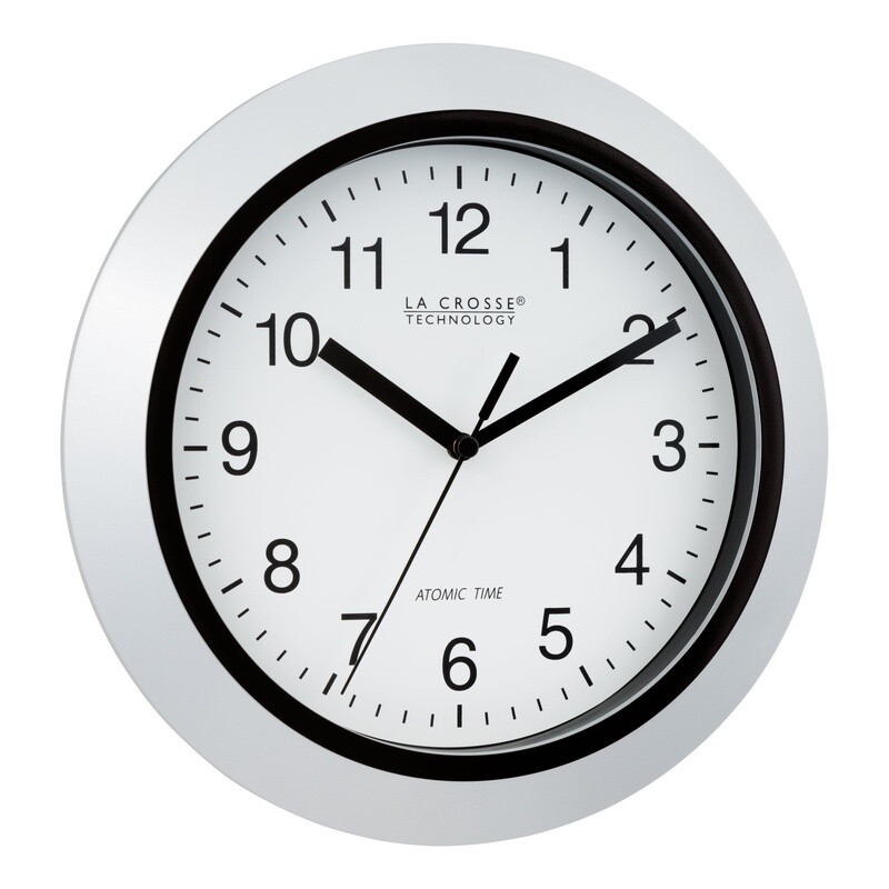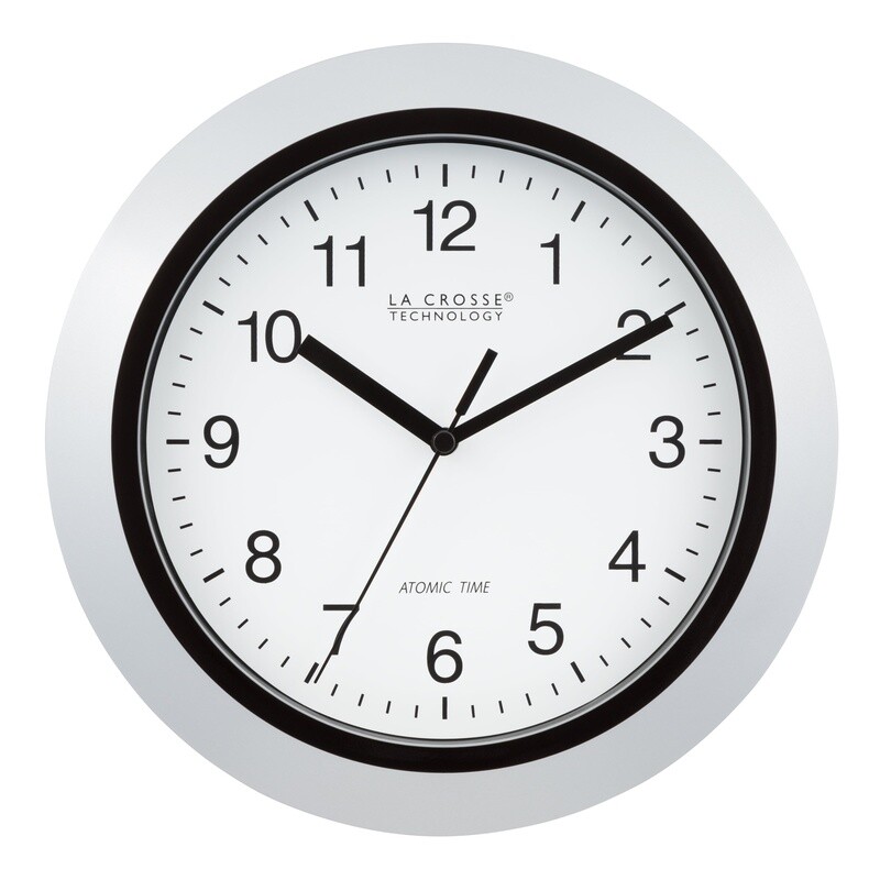 10 Inch Atomic Analog Wall Clock with Self-Setting Time & 4 Time Zones