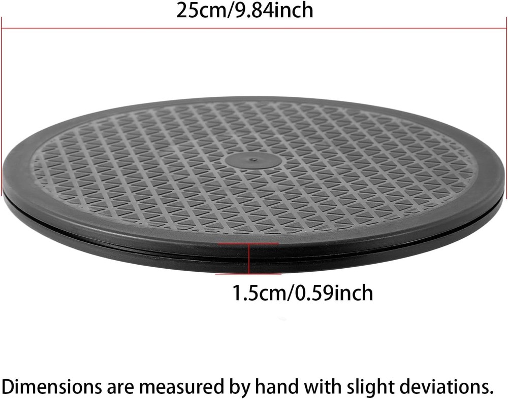 10 Inch Heavy Duty Rotating Swivel Stand - Lazy Susan with 10 inch, Black Product Details Brand: HSTECH Material: Metal Color: Black Item Weight: 0.45 Kilograms Maximum Weight Recommendation: 50 Pounds Item Diameter: 25 Centimeters Item Weight: 15.8 ounces Manufacturer: HSTECH Country of Origin: China Item model number: hpzp Batteries required: No Heavy Duty Swivel Turntable Includes: 10" inch diameter Lazy Susan,The diameter is 25cm and the thickness is 1.5cm Rotating Swivel Turntable Quality: Made with 100% high impact ABS material for long-lasting, fluid rotation. Other inferior swivels are made with soft, cheap polypropylene that dent and break. Heavy Duty Swivel Turntable: The turntable has a non-slip groove. There is a bead net inside the turntable for rolling support. Strong, durable, flexible and easy to use. Heavy Duty Rotating Swivel Stand with Steel Ball Bearings Versatile: Suitable for any size Notebook Computer, heavy Plants, Arts & Crafts. Works great for monitors, TV's, Stereo Speakers, Full 360 degree Rotation. Lazy Susan: Improve access to kitchen items, swivel serving dishes, rotate house plants for even sunlight. Lazy Susan Heavy Duty Rotating Swivel Stand with Steel BallBearings Specification:Size: 10 Inch Colour: BlackHeavy Duty Rotating Swivel Stand with Steel Ball Made with 100% highimpact ABS material for long-lasting, fluid rotation. Other inferior swivelsare made with soft, cheap polypropylene that dent and break. The turntable hasa non-slip groove. There is a bead net inside the turntable for rollingsupport. Strong, durable, flexible and easy to the Lazy Susan you can vastly improve your kitchen stuff, homesupplies or garden plants, or even office or store furniture by placing it ontothe turntable and just watch how easily it's turning around by a full 360degree turn.