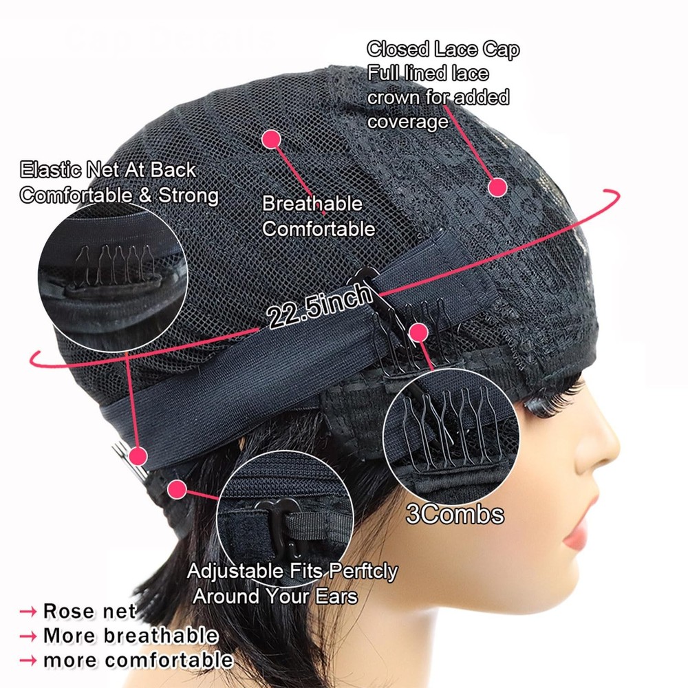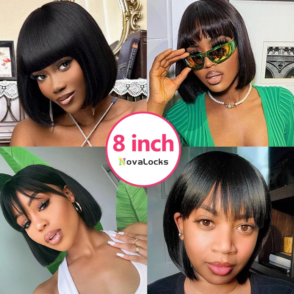 Short Black Human Hair Bob Wigs With Bangs 10 Inch Light Yaki Straight Realistic Scalp Glueless Non Lace Front Wig For Women Blunt Cut Bob Wigs 180% Density (Yaki bob 1B#, 8INCH) Product Details Color: Yaki bob 1B# Size: 8 Inch Brand: NovaLocks UPC: 765133705917 EAN: 0765133705917 MPN: Does not apply Color: Yaki bob 1B# Material: Human Hair Hair Type: Curly Style: Afro Special Feature: Glueless Package Dimensions : 8.27 x 8.15 x 2.32 inches; 6.35 ounces UPC : Manufacturer : YZSZSF Country of Origin : China Best Sellers Rank: #691,514 in Beauty & Personal Care (See Top 100 in Beauty & Personal Care) #18,592 in Hair Replacement Wigs #18,592 in Hair Replacement Wigs Customer Reviews: 3.3 3.3 out of 5 stars 26 ratings Wig Material: Selected Human Hair,Glueless Short Bob Wig with Bangs,Machine Made None Lace Front Human Hair Wig,More Convenient,You Can do Sports Crazily without Worries.Let You Always Keep Perfect In Anytime and Anywhere Human Hair Wig Quality: :100% Unprocessed Human Hair Straight.No Mixed,No Synthetic,No Chemical,No Lices,No Smell, Soft,Healthy and Natural,Can be Curled;150% Density Glueless Wig for Black Women Cap Size: Wigs Human Hair Cap Size: Medium Cap Size 22-22.5inch (Average Cap Size) with Adjustable Straps,Suitable for Different Head Sizes ;You Can Wear The Wig Comfortably&Easily; 8-14 Inch Available;The Hair Could be Cut According to Your Own Need Advantage: Natural & Soft, No Weird Smell,True to Length,No Glue Needed,Beginnner Friendly ,Perfect Choices for Occassions Like Parties,Birthday,Travel,Celebration,Graduation,Wedding etc.
