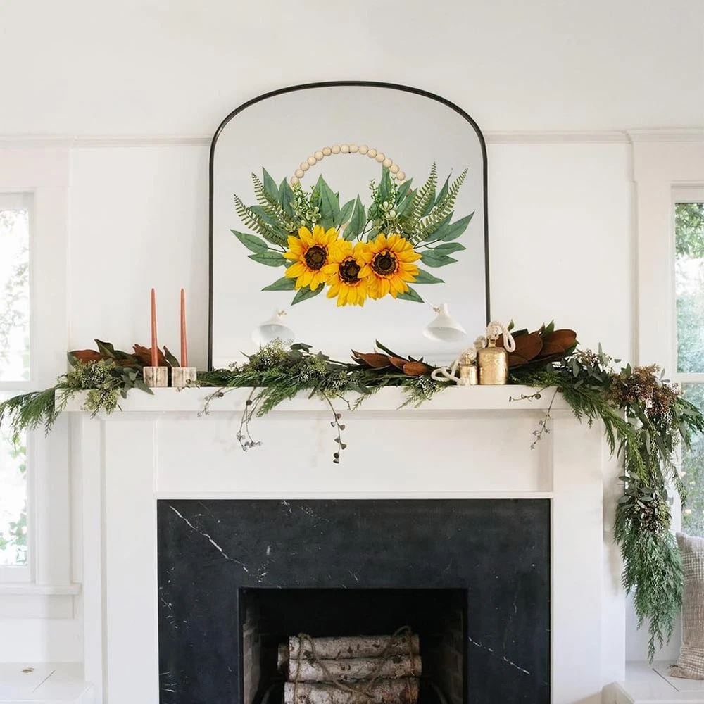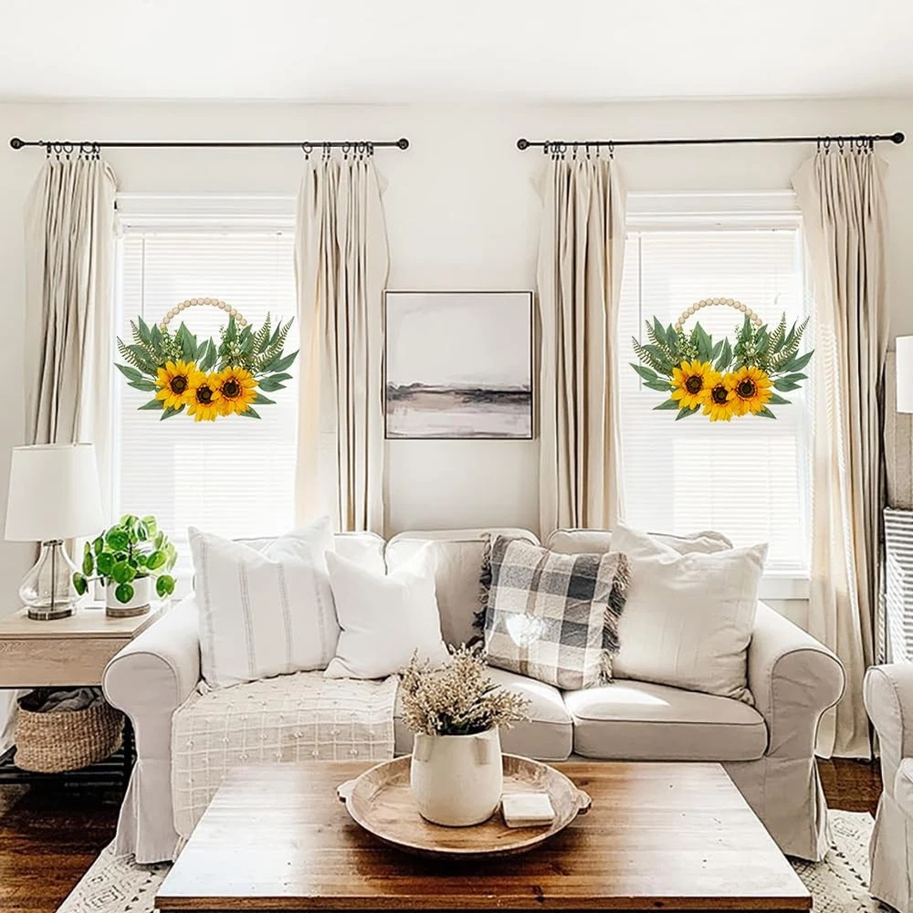 2Pack Floral Wreaths with Wood Bead Flower Wreaths for Front Door Decor These 10" boho wooden bead wreaths suitable for front door porch decor, indoor or outdoor decoration, baby shower.Natural color always adding fresh and natural atmosphere to your home. They can be easy to hang for wedding, party, stages, fireplace, office, dining rooms, celebration, etc Product Specification Style: Rose Hydrangea/Peony Hydrangea/Sunflower Quality: 2pcs Wood Bead Wreath Size: 10.0" Total Size: 19.7" Meterial: High-quality silk/Wood/Wire/Plastic Color: Yellow/White/Pink/Orange Why Choose Us ✔Premium Material ✔Exquisite Craftsmanship ✔Versatile Decor ✔Low Maintenance ✔Long-lasting Floral Door Wreaths: You will receive two artificial floral greenary wreaths. The flower wreaths will be the unique wall/window decor ornaments for farmhouse/living room/bedroom/nursery. Natural color always adding fresh and natural atmosphere to your home Unique Design: Consists of three sunflowers and some eucalyptus leaves and fern leaves as accents. Delightful and vibrant color, vivid natural form, giving artistic romantic feelings. The exquisite and unique design is perfect for modern farmhouse decoration style Premium Material: These wreaths are made of wooden beads into a circle and trimmed with silk flowers and polyethylene green leaves to make the decoration look more lifelike and elegant. Note: The flower might bend a bit due to shipping and packing, please adjust it if needed Lovely Size: Wooden bead wreath diameter: 10.2". Wreath after adjustment measures approximately: 19.7"W x 12.2"L. Please allow differences due to manual measurement. Easy to hang for wedding, party, stages, fireplace, office, dining rooms, celebration, etc Widely Used: These boho wooden bead wreaths suitable for front door porch decor, indoor or outdoor decoration, baby shower. If you have any questions about the product, please feel free to contact us, we will reply within 24 hours