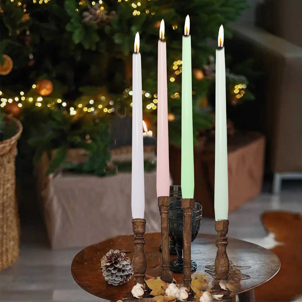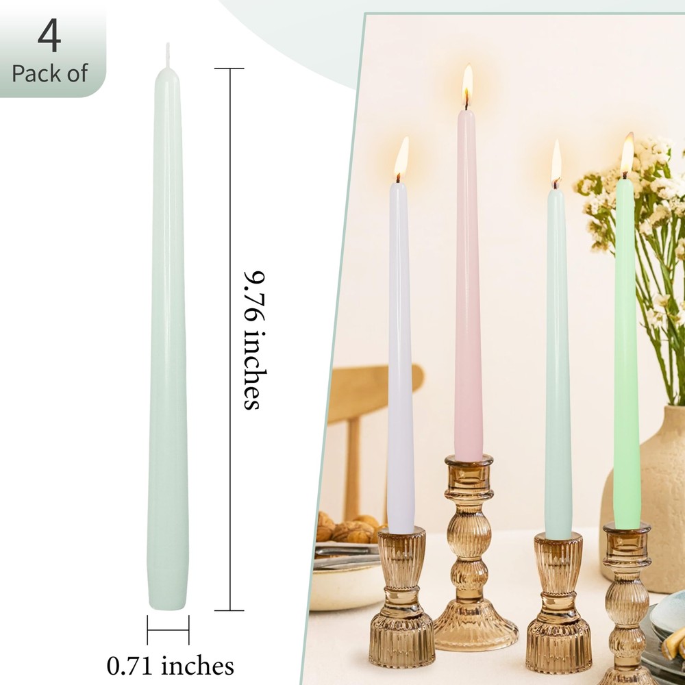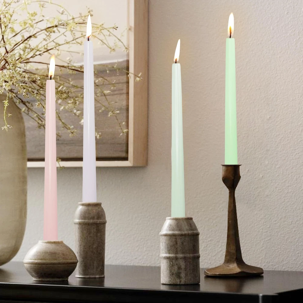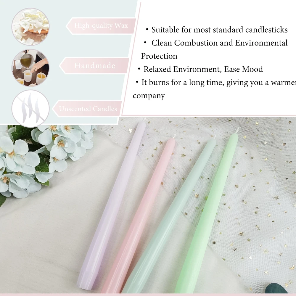 10 Inch Color Taper Candle Set of 4 Unscented Candles Sticks Smokeless Tall Tapered Candles for Home Party Wedding Decoration Valentine's Day Anniversary Festival Holiday Restaurant Party Candlesticks 🕯️【4 Color Taper Candle Design】This taper candle comes in four colors: light pink, light purple, light blue, and light green. The melting point and burning speed are precisely controlled through a special formula process, to make the green spiral candle burn more evenly and stably. The purple taper candle design features an elegant bright style and gradient color candle look that will complement almost any decor. 🕯️【Clean Burning Unscented Candles】In order to give you the best experience, our cute blue tapered candle is unscented, so you can use it in front of people with allergies. Unscented pink taper candlesticks won't distract you or spoil your mood with strong, unpleasant smells. 🕯️【10 Inch Summer Candles】There’s nothing more charming than the soft light and glow of candles. The red candles provide a pleasant and warm environment for your family. The green tapered candle sticks are very suitable for placing on the dining table, window sill, shelf, bedside table, floor, etc., adding warmth and romance to your study, bedroom, garden, living room.The 4 color candles to meet your needs; good for christmas, weddings, romantic dinners, home use, holidays, etc. 🕯️【4 PCS Smokeless Candle Sticks】This green tapered candle uses 100% cotton wick, which is not only environmentally friendly, safe and healthy, but also has less smoke when burning, so that you can enjoy the beauty of candlelight more at ease and comfortably. When you light this pink smokeless candlesticks, it will emit soft light and warm atmosphere, bring more warmth and romance to your room and life, and make your life more interesting and colorful. 🕯️【Romantic Dinner Candles 】This purple candlesticks is made of high-quality paraffin, shape very beautiful, can create a unique decorative effect, make your room more elegant, warm and romantic, make your home become more beautiful. Our pink dinner tapered candles are very aesthetically pleasing to look at, this means that they make the perfect Christmas décor for your home. they will be a great as a gift, a dream Christmas gift set for friends and family. 🕯️【Home Decoration Candles】These green candle stick candles are versatile and go well with any standard candle holder. Use to accentuate decor with a soft shimmer in the tranquil setting of your home after a long day. 🕯️【Safety First】We recommend using our greentaper candles on a plate, candle holder or candle centerpiece for the best experience. But remember to avoid wind or drafts that could cause the wick to bend, in which case the candle could fall! Never leave burning candles unattended. Do not leave candles alone with children or pets. 🕯️【Refund】If the candle is damaged when you receive it, please do not sign for it, or you can contact Amazon for a free replacement or refund. If you don't know what to do or have any questions, please feel free to contact us and we will try our best to help you. 🕯️【Drip-free】It's not magic, "drip-free" candles are the ideal blend of hard wax and a perfectly sized wick. But for a drip-free candle to remain drip-free, burning conditions must be ideal. The candle must stand vertically and not even at a slight angle. Also keep non-drip candles away from drafts (air conditioners, fans, outdoors, window drafts) as breezes may cause the flame to burn larger than usual or contact areas of the wax that it wouldn't normally reach, causing drips. Elegant and simple, these handmade taper candles are perfect for parties and centerpieces. Their soft glow adds a warm ambiance to every occasion. Our candles are made in batches, so please allow some variations in color and size. These differences are a normal part of candle making. 【1】Before burning, always trim the wick to ¼ inch. 【2】When lighting a candle, use long matches or a long-reach lighter. 【3】Never leave a candle unattended. 【4】It is recommended that candles do not burn for longer than four hours and cool for at least two hours before relighting. 【5】Never burn a candle on or near anything that can catch fire. 【6】Keep candles out of the reach of children and pets. 【7】Never touch or move a candle while it is burning or while the wax is liquefied. 【8】Place burning candles at least three inches apart from one another. 【9】Extinguish a candle if the flame becomes too high or flickers repeatedly. Let the candle cool, trim the wick, and check for unwanted drafts before re-lighting. 【10】Use a candle snuffer to extinguish a candle. It’s the safest way to prevent hot wax from splattering. SHIPPING Domestic Buyers - We have confidence in our products, but if you are not fully satisfied please contact us within 30 days of purchase and you will get full refund. - We ship within 3 business days of payment, usually sooner - We offer FREE shipping on all orders! - We only ship to the lower 48 states, no APO/FPO addresses or PO Boxes allowed International buyers – please note: Import duties, taxes, and charges aren't included in the item price or postage cost. These charges are the buyer's responsibility. - Please check with your country's customs office to determine what these additional costs will be prior to bidding or buying. * Order Cancellation Policy ** You can return a product for up to 30 days from the date you purchased it. 1. The seller reserves the right to cancel the special case only due to eBay cancellation fee. 2. The decision of seller is the final. 3. The seller will respond to the cancellation request within 2 business days. Please wait for the result of cancellation. 4. In case the cancellation is not completed by some reasons, the buyer can follow the options below to get the refund. 4.1 The buyer can reject the item when i