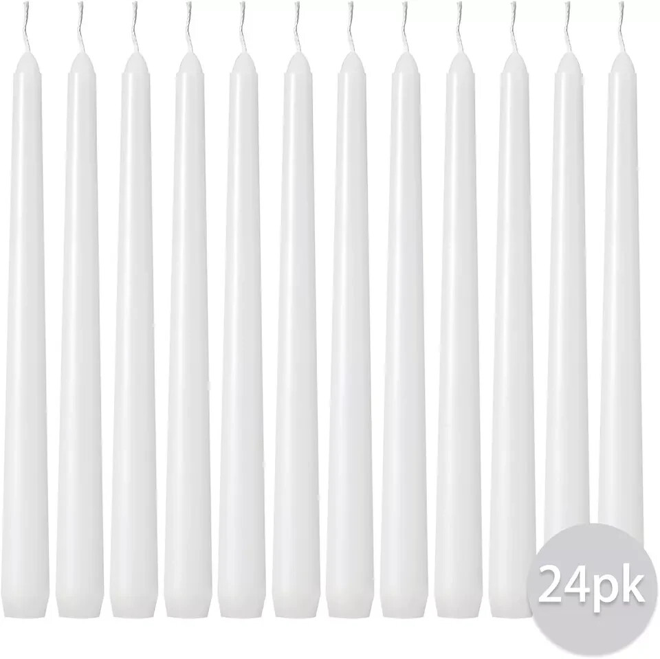 100% Money Back Guarantee if you are not satisfied with your purchase! ___________________ Description: SIZE & MAKE: Set of 24. These unscented stick candles are 10-inch long and have a 3/4-inch base diameter with a self-fitted end. Will fit in most standard candle holders. DRIPLESS: A dripless candle to remain dripless, burning conditions must be ideal. The candle has to stand up vertically, not even at a slight angle. Keep the dripless candle away from drafts (air conditioning, fans, outdoors, window draft) as well, as a slight breeze could cause the flame to flare up larger than usual or to touch areas of wax that it normally wouldn't reach, causing drips. CRAFTED WITH QUALITY: Made with 100% paraffin wax and pure cotton wicks, these high quality candles burn cleanly and do not drip or create a mess. White taper candles 10 inch 's burning time is 8 hours. Clean burning candles - We make 10 inch tapered candles only from quality wax, so when the taper candle will burn you will see wax of the same color as the long candles itself. When you look at white dripless taper candles light you will be charmed, its straight and soft light will not leave you indifferent. SET THE MOOD: These tall tapered candles feature an elegant design that is suitable for restaurants, weddings,special events, parties, holidays and religious events. Perfect for use in Synagogues and churches. Their classic look complements almost any decor. ________________________ 100% Money Back Guarantee: We offer 30 Day Money Back Guarantee from the day you purchased if you’re not satisfied with your product. If you have any questions about our products, please contact us as soon as possible. Customer satisfaction is our absolute priority. Shipping: We are always working hard to ensure your package arrives as soon as possible. Please understand that some factors like weather, high postal traffic, and the performance of shipping companies are outside of our control. We offer free shipping to the lower 48 states and ship within 3 business days of payment, usually sooner. We do not accept P.O. Boxes. Please provide a physical address. You will be notified via eBay messages as soon as your items ship. Delivery: We will ship out the item in 2-3 working day after receiving the payment. Usually the delivery takes 2-5 business days. If you don't receive the items after 10 days, please feel free to contact us. You will get a replacement or a full refund. Please DO NOT open a return request or leave negative feedback without asking for help . Returns (Get Free Return Label): We offer a 30-Day Return Policy on defective/wrong items or items which you are not completely satisfied with. You have the option for a full-refund or an exchange of the item. No need to buy eBay return label. Contact us via eBay messages and get free return label. Returned items must be in all of the original packaging and include all of the original accessories or items that came with it. The item and package should be in original condition. Contact Us: Any queries or issues incurred, please feel free to contact us via eBay message, we will get back to you within 24 hours. Please DO NOT open a return request or leave negative feedback without asking for help. Feedback: Your feedback is very important to us. After you get your package and you are satisfied with our service, please leave us positive feedback. We are highly appreciated for your POSITIVE feedback and 5 stars. Enjoy shopping.