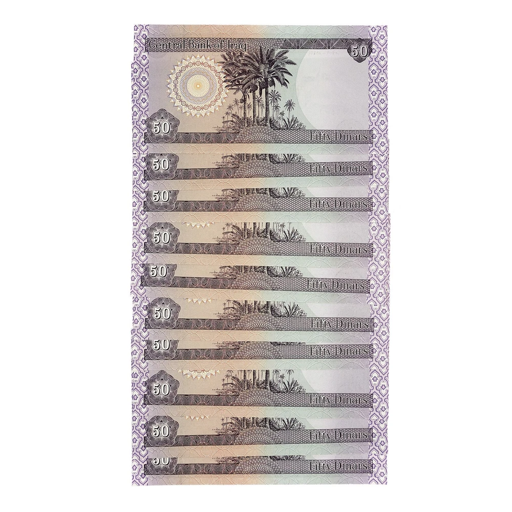 This is a set of 10 Iraq 50 Dinars notes from the 2000s, with an AU-UNC grade. These notes were manufactured in Iraq and are a great addition to any collection of world paper money. The intricate design on the notes features the Iraqi coat of arms and the denomination, with a clear window for easy counting. Whether you are a seasoned collector or just starting out, these notes are a must-have for anyone interested in Iraqi currency.Serial numbers vary.