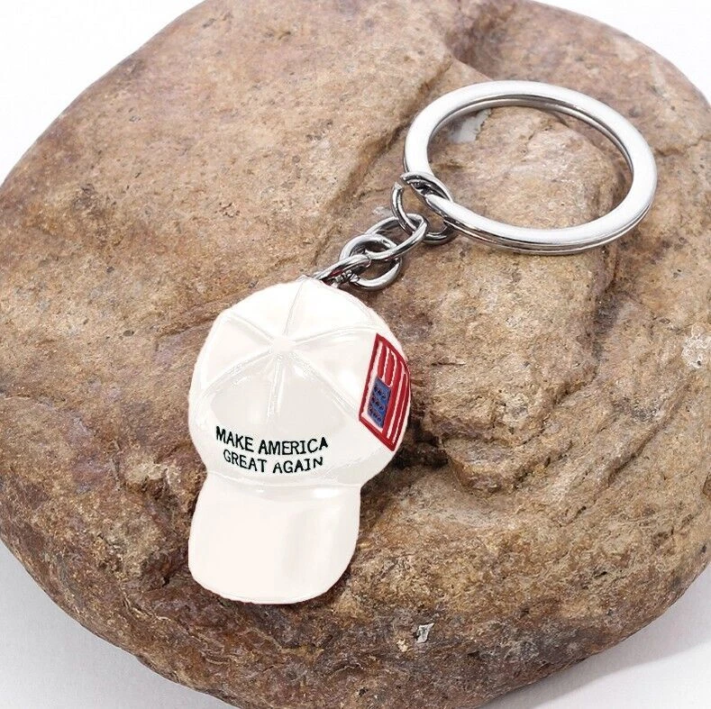 Show your support for Donald Trump with this MAGA Hat Keychain. Made of quality metal, this keychain features a beautiful American flag design that adds a touch of uniqueness to your keyring. The keychain is perfect for people who want to show their love for the United States of America and President Trump\\\\'s 2020 and 2024 presidential campaigns. It is an ideal gift for a Donald Trump fan! Add this to your collection today and show your support for President Trump! I will package well and ship right away. Thank you!