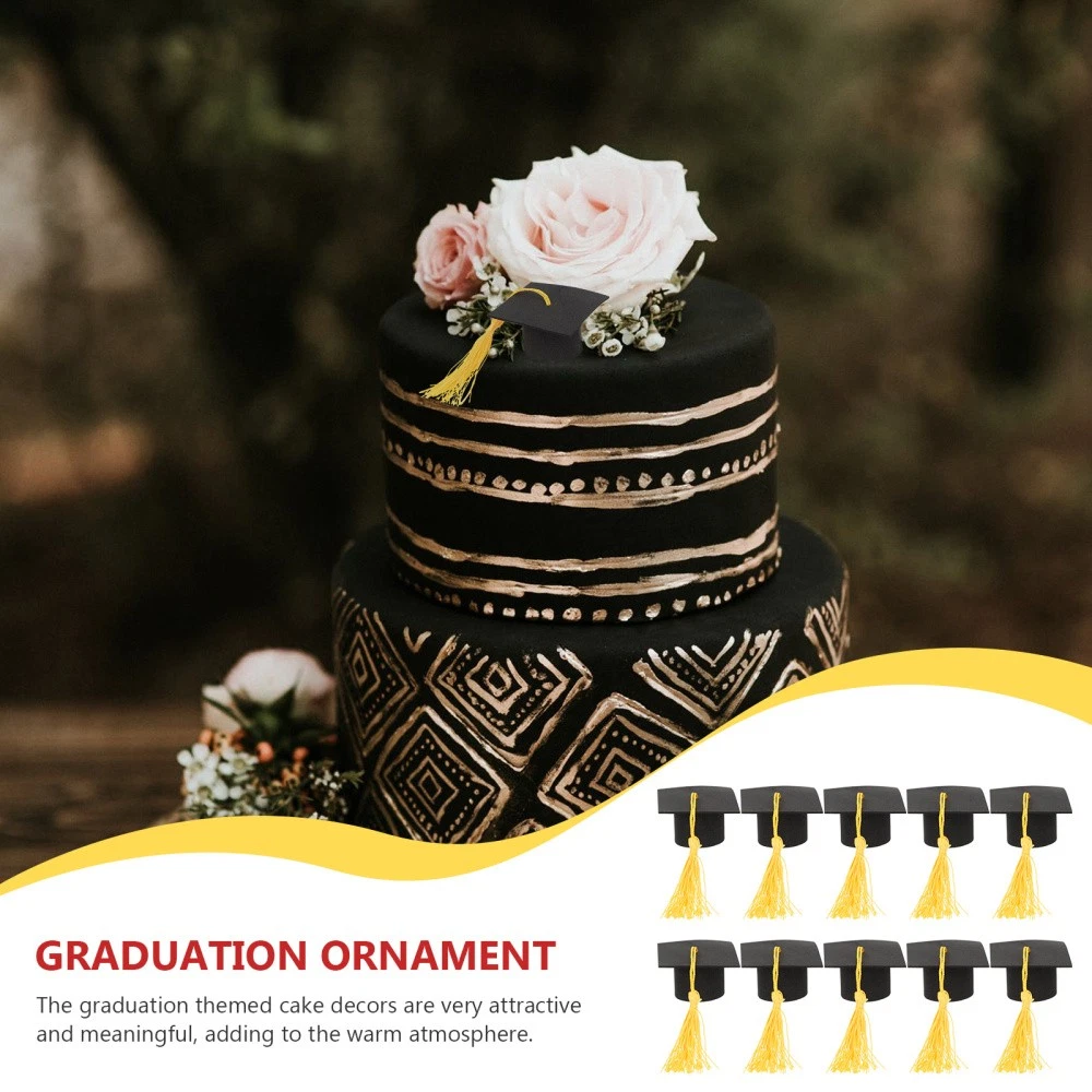 10 Pcs Graduation Party Decor Bachelor Hat Student Cap Cake Topper