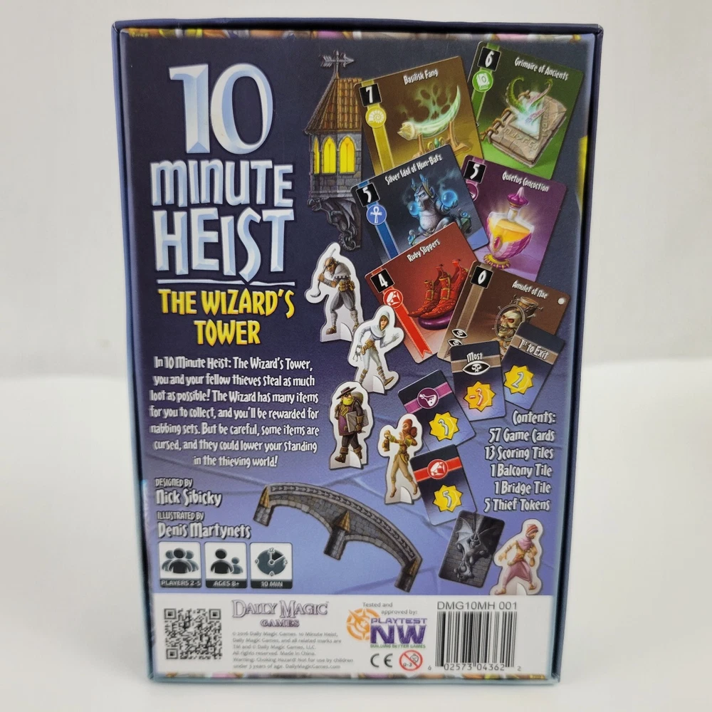Game Title: 10 Minute Heist: The Wizard's Tower Game Type: Board Game MPN: DMG10MH001 UPC: 602573043622 Brand: Daily Magic Games Min. Number of Players: 2 players Type: Complete Game Year: 2016 gtin13: 602573043622