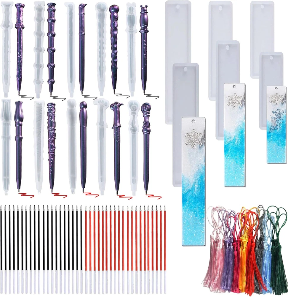 Package includes: 10 PCS pen resin molds and 40 PCS ballpoint refill pens, 6 PCS bookmark epoxy resin casting molds, 20 x tassel.which will be your practical DIY making supplies, to meet your handmade needs in daily life. Quality material: Our ballpoint molds are made of silicone, durable to last for long time, not easy to break or deform, they are also easy to apply and release, high transparency, smooth and mirror shine surface. How To Use: First of all, insert the pen refill into the top nodule of the molds. The nodule is design for an opening in the sealed resin pen, which will help resin pens write well. Then pour resin into the molds, wait the resin get cured, release the molds. Enjoy your DIY time: With these ballpoint pen silicone molds, you can make kinds of pens according to your own preference, show your personality, and enjoy the whole making process, will be an interesting and relaxing thing. Widely Application: The pen molds for epoxy resin are suitable for making personalized or themed pens, diamond art pens, art crafts projects and so on. It's also a great gift for colleagues, teachers appreciation, students, family and friends. The silicone ballpoint molds for resin can be applied for craft projects, DIY making, such as pen, candle and more, just use your imagination. Specification: Material: silicone Ballpoint pen silicone moulds size: please refer to the picture Refill pens color: red and black Package includes: 10 x Pen resin molds 40 x Ballpoint refill pens 6 x Bookmark epoxy resin casting molds 20 x Tassel Note: 1.Keep the silicone mold and refill pens away from sunlight. 2.Manual measurement, please allow slight errors on size.