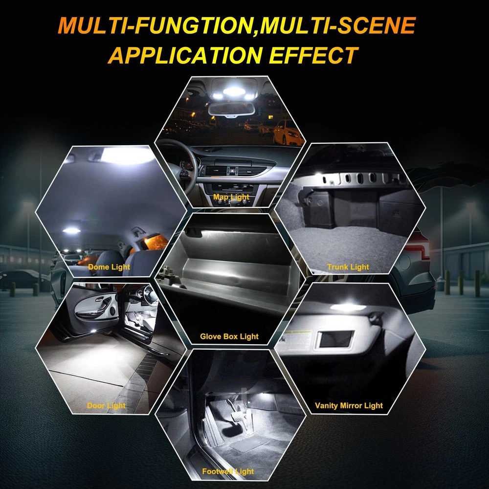 Replaces Stock Number 03: 904 | 904NA | 906 | 906NA | 912 | 916 | 916NA Features: Ballast Included Suitable For: License Plate Light Number of Bulbs: 10 Bulb Fitment Code: W5W (168) Replaces Stock Number 02: 921 | 922 | 158 | 160 | 161 | 161B | 168 | 168A Manufacturer Warranty: 1 Year Manufacturer Part Number: W5W 194 147 152 158 159 161 168 184 192 193 259 Replaces Stock Number 01: 193 | 194 | 194B | 194G | 194NA | 194R | 2821 Lighting Technology: LED Voltage: 12 V Color Temperature: 6000K OE/OEM Part Number: Does Not Apply Type: Light Bulb UPC: Does not apply gtin13: Does not apply Work For: T10 CAR Interior Package Kit Combo Interchange Part Number: License tag: 1252 2450 2652 2921 2825 921 906 579 Light Color: Cold White Brand: DYNITX