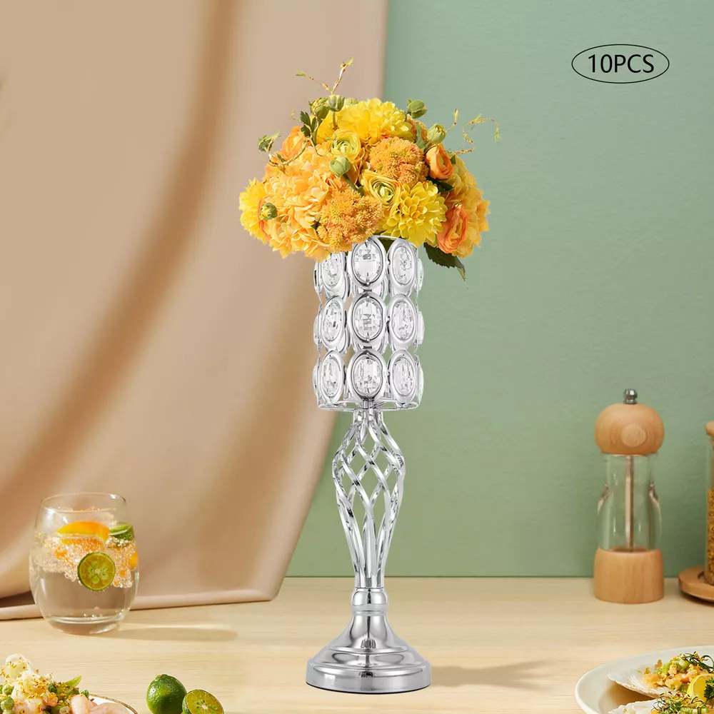 Package Included 10* 19.7"H Silver Wedding Flower Vases Application The wedding flower vase is ideal for weddings, celebrations, party scenes, birthdays, aisle road lead, and event decorations. It is also suitable for home décors, living rooms, dining rooms, parlors, coffee shops, bars, hotels, etc. Specifications Material: Iron Surface Treatment: Electroplating Color: Silver Style: Nordic, Romantic Mounting Type: Free-standing Assembly Required: Yes Number of Vases: 10 Net Weight: 6kg/13.23lbs Gross Weight: 11kg/24.25lbs Base Diameter: 14cm/5.5inch (Each ) Top Diameter: 12cm/4.7inch (Each ) Top Inner Diameter: 5.5cm/2.16inch (Each ) Overall Height: 50cm/19.7inch (Each ) Package Size: 61*31*40cm/24*12.2*15.75inch Notes Please note that candles and flowers are not included. 10 Pack 19.7"H Wedding Flower Vases Nordic Centerpieces w/ Crystal Beads Silver Description Decorating the wedding site with fresh or artificial flowers to create a romantic atmosphere is essential to an ideal wedding. Our wedding flower vases, which have crystal beads made by exquisite crafts, elegant appearance, and high practicality, can spice up your wedding decor with flowers, wax, or candles. It is also suitable for celebrations, party scenes, birthdays, aisle road leads, event decorations, etc. Key Features Solid and Durable: Our flower vases, adopting premium iron with smooth connection, have solid construction and are durable. You can use them repeatedly. Exquisite Workmanship: This product adopts an exquisite electroplating treatment and a manual fixed knitting process, making it high-quality and delicate. An Eye-catching Backdrop: With the sunlight or lamplight shining on the silver vase, it can add a sparkling glow to dull wedding décor, and impress your guests with the eye-catching backdrop. Various Decoration Methods: You can put fresh flowers, artificial flowers, wax, or flameless pillar candles on the top round plate as a flower centerpiece or a candle holder for tables, especially for weddings, to create a romantic atmosphere. Delicate Gift: Because of its exquisite crafts, elegant appearance, and high practicality, the flower vase is a fantastic gift for housewarming, weddings, and other festivals. Elegant Appearance: The unique hollow design with intersecting lines, together with exquisite surface and casual outlines which is like a romantic lingering, makes the table decoration more attractive. Easy to Assemble : This set pillar flower vase for wedding table centerpieces is made from a few different segments. With its simple structure and equipped accessories, you can assemble it easily and quickly. Easy to Clean: Due to iron crafts and an electroplating treatment, you can use a soft cloth to clean and dry, which is simple and labor-saving. Details Stable Stand Base: Each vase is equipped with anti-slip pads, together with the round structure to make the whole vase more stable, preventing it from toppling and scratching. Top Hollow Holder: The top diameter of the horn holder is 12cm/4.7 inches, which can place more large candles, flowers, and artificial flowers without scratching your hands. Crystal Beads: The top holder is hand-strung with crystal beads, making it appear shimmering, appealing, and unique, and can create a dreamy atmosphere. Application The wedding flower vase is ideal for weddings, celebrations, party scenes, birthdays, aisle road lead, and event decorations. It is also suitable for home décors, living rooms, dining rooms, parlors, coffee shops, bars, hotels, etc. Specifications Material: Iron Surface Treatment: Electroplating Color: Silver Style: Nordic, Romantic Mounting Type: Free-standing Assembly Required: Yes Number of Vases: 10 Net Weight: 6kg/13.23lbs Gross Weight: 11kg/24.25lbs Base Diameter: 14cm/5.5inch (Each ) Top Diameter: 12cm/4.7inch (Each ) Top Inner Diameter: 5.5cm/2.16inch (Each ) Overall Height: 50cm/19.7inch (Each ) Package Size: 61*31*40cm/24*12.2*15.75inch Package Included 10* 19.7"H Silver Wedding Flower Vases Notes Please note that candles and flowers are not included. Please allow the slight color difference caused by the shooting light and 1-3cm error due to manual measurement, and make sure you do not mind before you order. Payment Delivery details Terms of sales About us Contact us Payment We accept ebay payment 。 Fees such as import duties, taxes are not included in the item price or shipping costs. These charges are the buyer's responsibility. Delivery details Shipping: 2-9 working days to: USA Terms of sales We maintain high standards of excellence and strive for hundred percent customer satisfaction. Feedback is very important to us. We hope that you contact us immediately before you give neutral or negative feedback, so that we can address your concerns. It is impossible to address issues if we do not know about them! About us Your satis faction is our ultimate goal. We work hard to earn your trust and future business. Our certified technicians have tested each item before shipping. The unit comes with 1 year limited warranty on all manufacturing defects. a) If you receive a defective item, you may return it or ask for a discount. Please contact us within 14 days after you receive the package. b) What you returned must be intact and in its original packaging as re? u. Customer is responsible for shipping costs of the returned item. c) We will cover the cost of shipping back t with the shipping rate indicated in the registration page. We will send you a new unit or refund the full payment you paid. Thank you. Contact us Business Hour Business Hour: Monday To Friday: 8:30 AM to 5:00 PM (Beijing China time) Due to time zones, our reply to your questions may not be immediately. But within above working time, we will reply your email within 24 hours. If it's non-workdays, please kindly be patient and wait till Monday. Please contact us with ebay message. Please feel free to contact us if you have any questions. Monday To Friday: 8:30 AM to 5:00 PM (