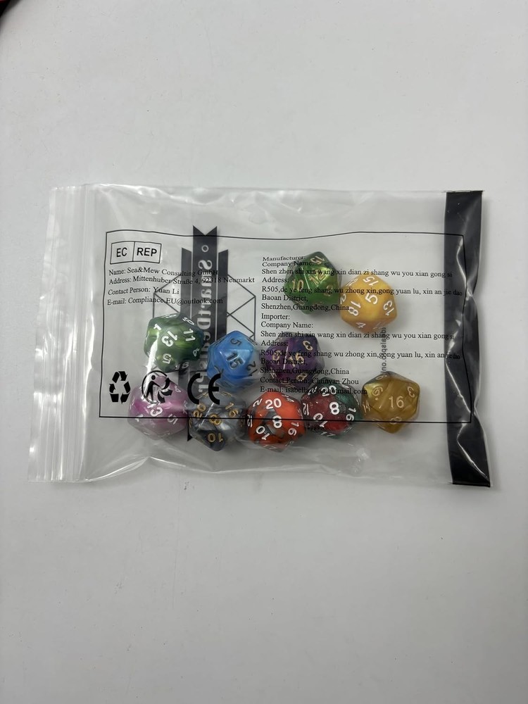 Store New Arrivals Add to Favorite View Feedback Contact 10 Pack 20 Sided Dice D20 Polyhedral Dice for DND RPG MTG Table Game Description Item model number SDD530195 Color Double Color Product Dimensions 3.15 x 4.72 x 1.18 inches Item Weight 2.11 ounces Manufacturer recommended age 3 years and up Is Discontinued By Manufacturer No Package: This dice set include 10pcs of mixed color D20 dices. The diameter of this D20 dices are 22mm(0.86 inches). Colors: The colors incudes all double colors. Colors may vary slightly with the picture, but no repeat colors. Easy to Read: All the numbers are engraved on the dice which will never fade easily. The numbers are as large as possible for easy reading. Material: These D20 dices are made of premium acrylic materials which is durable and hardwearing. Application: Perfect for Table Games, Board Game, Dungeons and Dragons, MTG, RPG, etc. Product description Package Include & Size This set contains 10pcs double color D20 dices.The diameter of this D20 dices are 22mm(0.86 inches). Material Made of acrylic materials which is durable and hardwearing. Each die with large and easy to read numbers. Wide Application Perfect for Table Games, Board Game, Dungeons and Dragons, MTG, Math Teaching, etc. ABOUT US We offer the best prices around on high quality products. Our E-store includes media such as books, movies, music and games while offering electronics, toys, sporting apparel, clothing, tools, general home, garden items and more. SHIPPING We are always working hard to ensure your package arrives as soon as possible. Please understand that some factors like weather, high postal traffic, and the performance of shipping companies are outside of our control. We offer free shipping to the lower 48 states and ship within 2 business days of payment, usually sooner. We do not accept P.O. Boxes. Please provide a physical address. RETURNS We offer a 30-Day Return Policy on items which you are not completely satisfied with. You have the option for a full-refund or an exchange of the item. No returns are available on items shipped outside of the USA. PAYMENT We accept PayPal. CONTACT US This page content is yet to come Please ad us to your favorite seller and visit again later Thank You CUSTOMER SATISFACTION We try our very best to make sure every customer is completely satisfied. If there's a problem, message us! We're happy to help.