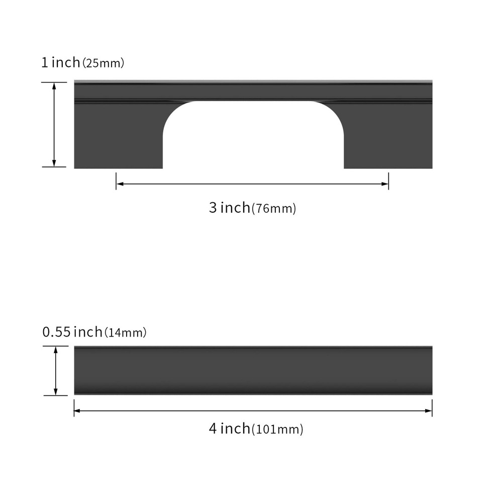 10 Pack 3 Inch(76mm) Matte Black Kitchen Cabinet Handles, Cabinet Pulls Kitchen Cabinet Hardware for Cupboard Drawer Pulls brand assurance: We take your user experience very seriously and we are so confident in the quality of our products that we will replace them if there is any quality problem. cabinet hardware:10 Pack 3 Inch Matte Black Cabinet Handles.Each handle is individually securely packaged to prevent bumps and scratches. Made of alloy with a Matte Black finish, the pull is a heavy duty cabinet pull that is strong. Standard screw spacing for easy installation and . Wide range of application: furniture pulls are ideal for cabinets, closets, cupboards, drawers, dressers, doors and wardrobes. You can upgrade your home with your DIY. Measurement: Hole Centers(CC):3 inch(76MM); Overall Length:4 inch(101MM); Width:0.55 inch(14MM); Projection:1 inch(25MM); Please check the Size of handles you require carefully before purchasing.