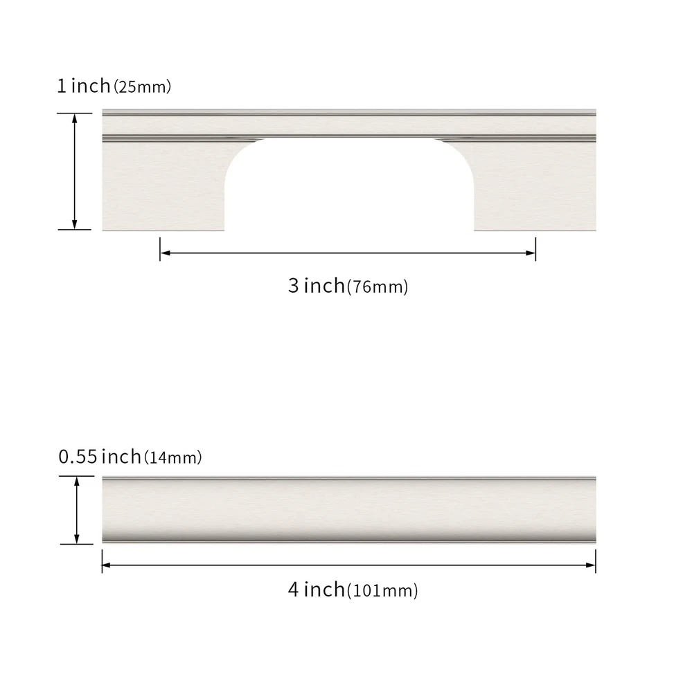 10 Pack 3 Inch(76mm) Brushed Satin Nickel Kitchen Cabinet Handles, Cabinet Pulls Kitchen Cabinet Hardware for Cupboard Drawer Pulls brand assurance: We take your user experience very seriously and we are so confident in the quality of our products that we will replace them if there is any quality problem. cabinet hardware:10 Pack 3 Inch Brushed Satin Nickel Cabinet Handles.Each handle is individually securely packaged to prevent bumps and scratches. Made of alloy with a Brushed Satin Nickel finish, the pull is a heavy duty cabinet pull that is strong. Standard screw spacing for easy installation and . Wide range of application: furniture pulls are ideal for cabinets, closets, cupboards, drawers, dressers, doors and wardrobes. You can upgrade your home with your DIY. Measurement: Hole Centers(CC):3 inch(76MM); Overall Length:4 inch(101MM); Width:0.55 inch(14MM); Projection:1 inch(25MM); Please check the Size of handles you require carefully before purchasing.