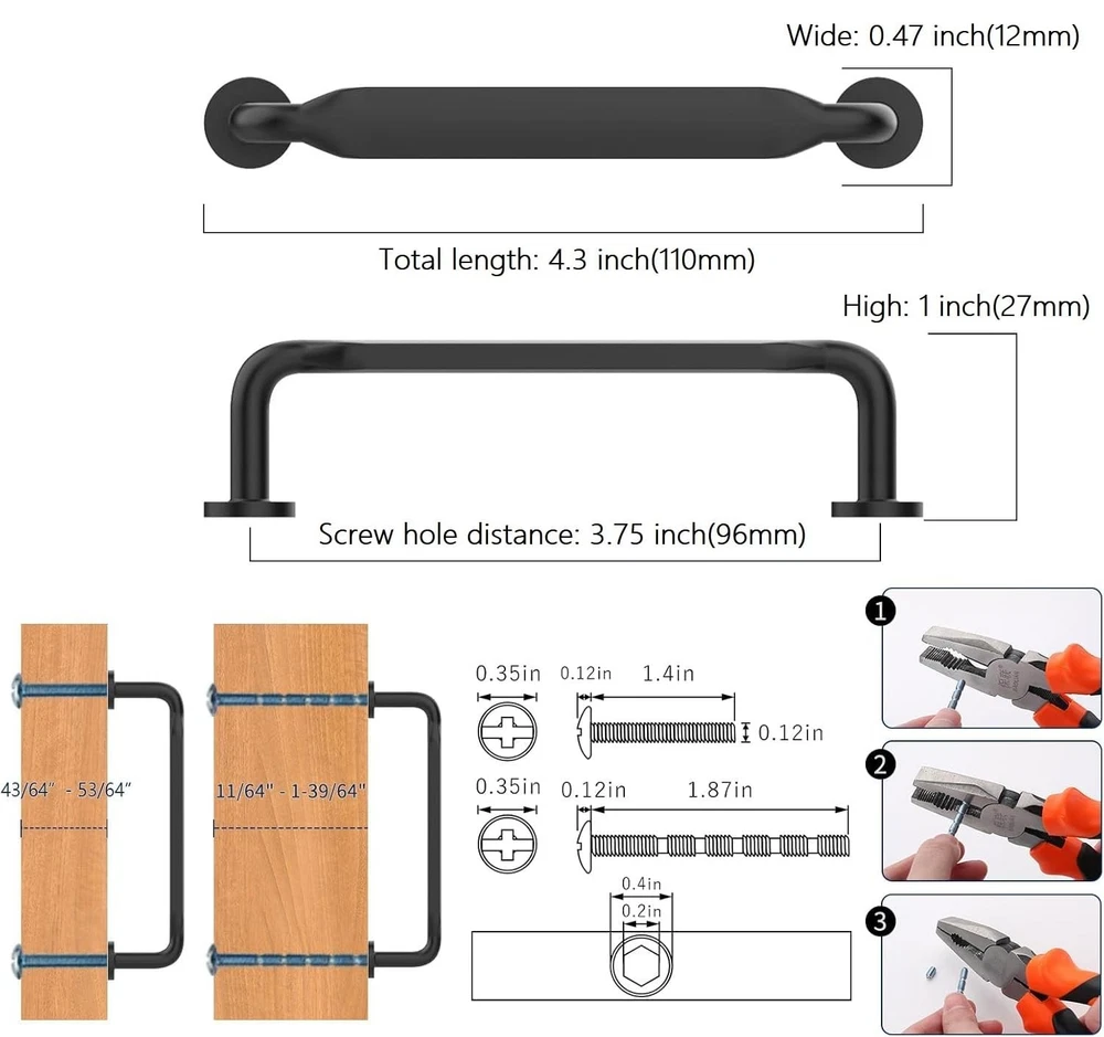 10 Pack 3.75 Inch(96mm) Matte Black Cabinet Pull Kitchen Cabinets Handles Black Cabinet Hardware for Cupboard Handles Kitchen Pulls for Cabinets Drawer Pulls 【Sturdy Material】This kitchen cabinet handle is made of solid zinc alloy with matte black finished, which is not easy to rust and can be used for a long time. The deep thread design makes the handle not easy to loosen and fall off. Any quality issues, please let us know and we are willing to help you solve them. 【Versatile Styling】kitchen handles are suitable for different styles of cabinets. The matte black color adds elegance to the kitchen cabinets without standing out too much and making your furniture look stylish. The smooth forging surface is very convenient for daily maintenance. 【Wide Application】cabinet pulls are ideal for kitchen cabinets, closets, cupboards, drawers, wardrobe and storage cabinets. A variety of styles and colors for your reference, you can upgrade your warm home through DIY. 【Size of Cabinet Handle】Hole Centers(CC): 3.75 Inch(96MM); Overall Length: 4.3 Inch(110MM); Height: 1 Inch(27MM); Width: 0.47 Inch(12MM). Please check the size of the handles you need carefully before purchasing ensure successful installation. 【Package Description】There are 10 matte black handles you will receive, each with 4 screws (2 regular screws and 2 breakaway screws that you can cut to the desired size). Each pull is packaged separately to prevent scratches.