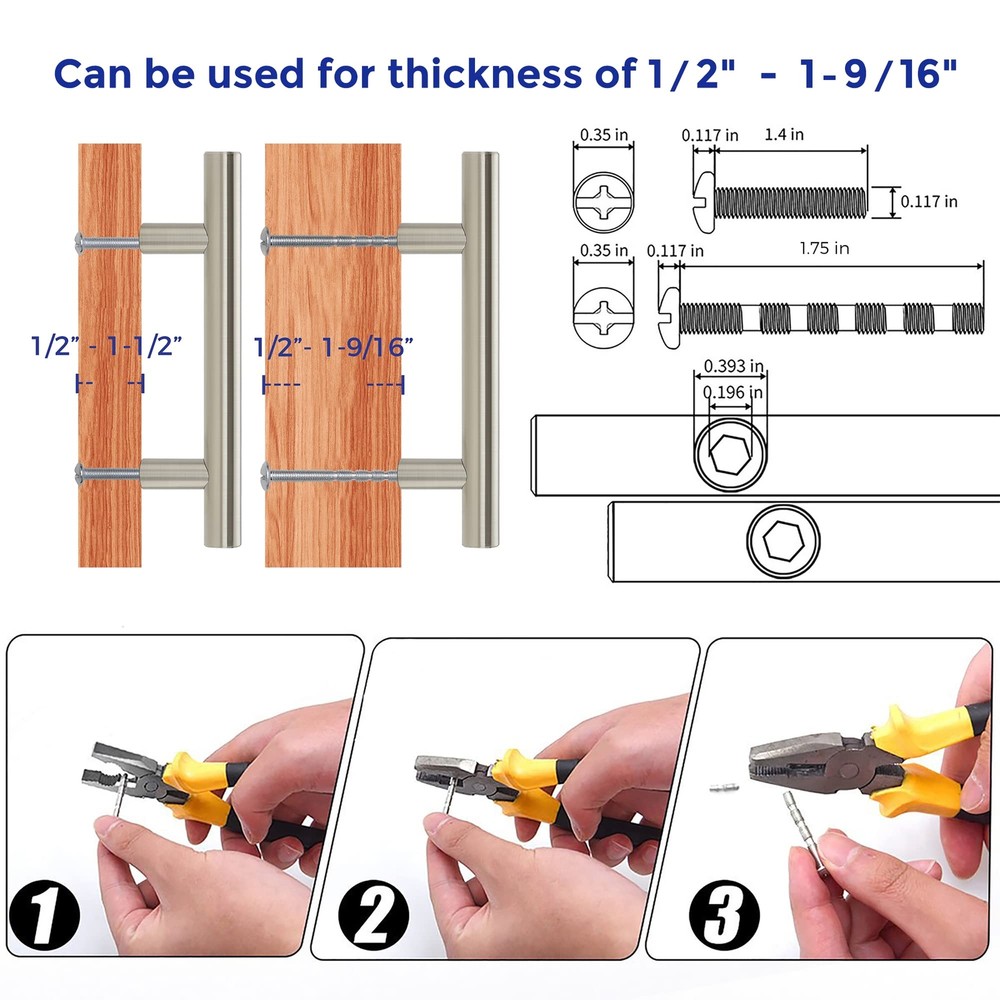 10 Pack 5'' Cabinet Pulls Brushed Nickel Stainless Steel Kitchen Drawer Pulls Cabinet Handles 3" Hole Center 365-Day Evaluation: We believe you'll find value in your handles. Use them for a full year, and if they don't meet your needs, we're here to help If you're replacing your handle, measure and ensure the center to center hole spacing of the current handle is 3 Inches Installing new cabinet handles, drill two holes with center to center spacing of 3 Inches STURDY & STRONG: 10 bar pulls made of stainless steel finished with classic satin nickel coordinates well with other nickel appliances and accessoriess Simple look: The Brushed Nickel cabinet handles have a wide appeal across a range of kitchen cabinet doors and drawers The Satin Nickel handles have a clean and timeless look that works with farmhouse, vintage, traditional and transitional styles MEASUREMENT: 3 Inch(76mm), Total Length:5 inch(127mm), Diameter:1/2 inch(12mm) Projection:1-1/4 inch(32mm) For over a decade, has always been committed to bringing the best home revitalization experience to our users for we deeply understand what does a beautiful and fashionable house mean to a whole family. The Euro-style cabinet handle finished with satin nickel provides an elegant modern flavor to your cabinet and even your whole room. Fashionable and durable design coordinates with many décor themes, and are proven to be functional and elegant through years of use. Stainless steel handles can be used anywhere in the house to revitalize your kitchen or bathroom and provide any furniture updates. 10 handles in a coordinating design and finish with two mounting holes can also be applied in cabinet drawers. Decorative Cabinet Hardware Revitalization with cabinet pulls is perfect for accenting the décor and style of existing cabinets or furniture. Decoration with our cabinet handles provide you with great convenience to change look and feel of an entire room. Stainless Steel Cabinet Pulls Adds a Distinguished Look The cabinet bar pulls elaborately crafted and designed to beautify your house with their simplicity. Tough Durable Design The lightweight but durable cabinet pull is built to withstand over years of wear and tear. They have a nice weight to them and come individually wrapped to protect against any scratches. Sleek Appearance Quick and easy install Screws included Shipping We offer FREE shipping on all orders! We ship within Three business days of payment, usually sooner. We use a selection of shipping services such as UPS, FedEx, USPS etc. We only ship to the lower 48 states, no APO/FPO addresses or PO Boxes allowed. Local pickups and combined shipping options are not provided at this time. Return You can return a product for up to 30 days from the date you purchased it. Any product you return must be in the same condition you received it and in the original packaging. Please keep the receipt. Payment We accept payment by any of the following methods: PayPal Please pay as soon as possible after winning an auction, as that will allow us to post your item to you sooner! Feedback Customer satisfaction is very important to us. If you have any problem with your order, please contact us and we will do our best to make you satisfied. Contact Us If you have any queries, please contact us via ebay. We usually respond within 24 hours on weekdays. Please visit our eBay store to check out other items for sale! Thank you for shopping at our store.