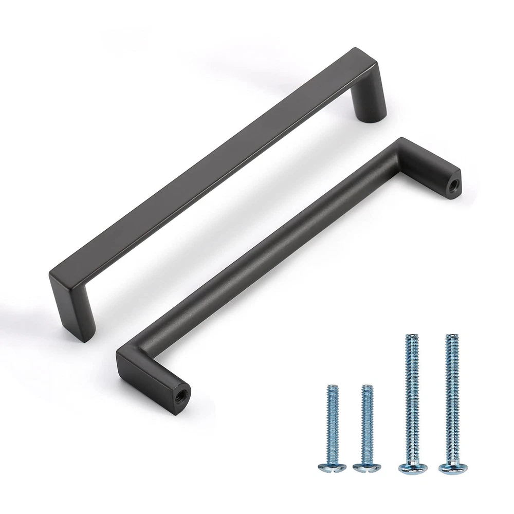 Material - Cabinet handles are made of zinc alloy with Matte Black finish, which is more stable, while making your cabinets more refined and beautiful. Cabinet Pulls Dimensions - Hole Centers(CC):5"(128mm); Overall Length:5.31"(135mm); Width:0.43"(11mm), Projection: 1" (27mm) Fits Most Cabinets - We offer 1" (25mm) and 1.77" (45mm) mounting screws to help you mount most furniture of different thicknesses, Machine Screws Metric Size: M5 Versatile Appicatications - This Matte Black cabinet handle is perfect for dressers, drawers, doors, cupboards, wardrobes, closets. The solid kitchen cabinet hardware solid zinc handle is a good helper to pull out the drawer quickly and easily. BRAND - We take your user experience very seriously, if you receive any quality problems with your cabinet pulls, we will solve them for you.