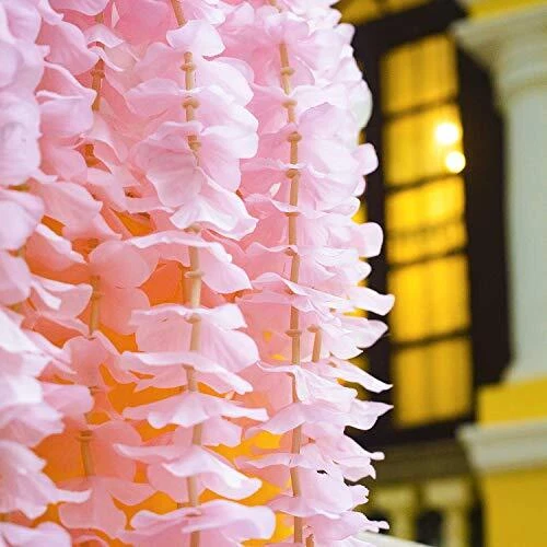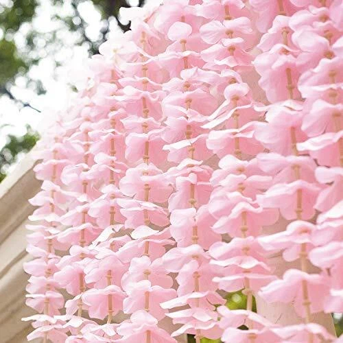 Return Policy Fast Delivery Trusted seller 10 Pack / 78 inch Wisteria Artificial Fake Hanging Flowers Silk Vine Ratta Plants Leaf Garland for Home Wedding Party Garden Outdoor Greenery Wall Decoration Pink Pink Product Description You will get 10 Pack (each 78.7 inch long) (Total 65.6 Feet) artificial silk wisteria. About 100 flowers per piece. Length: approx 78.7 inch each, flower size: approx 2*2 inch (5cm*5cm) . Flowers were made from silk and the stems were made from plastic, high quality. Can be used for wedding, party, garden, balcony, office, shopping malls, easy to install and disassemble. Some of "artificial vine plants" it will case some plastic smell in the long time's package.Pls open and place w the air convection in 1-2 days.The plastic smell it will go away normally. Shipping Returns Payment Shipping Shipping is FREE to all addresses other than APO/PO boxes in the lower 48 states. All our stock ships from US-based warehouses. Shipped via USPS or UPS (depending on location and package weight) Unless stated otherwise, all orders will ship within 24-72 hours of your payment being processed. Check our feedback to see the great reviews of FAST shipping we offer. Returns Seller does not accept returns Payment We currently accept payment via eBay managed payments only. Once payment is cleared, we will dispatch your shipment within 1-3 business days. Please refer to the "Shipping" tab for more information regarding shipping speed to your destination.