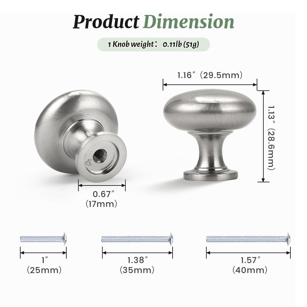 10 Pack Kitchen Cupboard Round Knob(individually polybagged with 1" mounting screws) Brushed Satin Nickel Kitchen Cabinet Round Pulls are 1-1/" Diameter with Projection 1-1/5". Compateble with all drawers&cabinets, make an attractive addition to your kitchen, bathroom&home Round Knob Style Drawer Pulls look clean and understated, will give your kitchen or bathroom a modern and simple feel! Customer's satisfaction is always our primary task. Any Problem we will try our best to help.