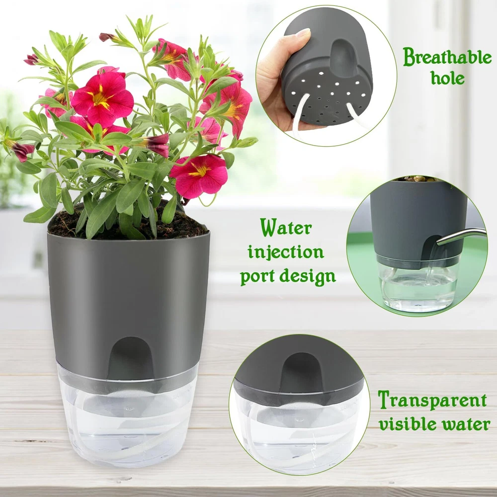 【Self-Watering Planter】Our package includes 10pcs clear self-watering planters and 10pcs white labels,meet your daily use needs,perfect for growing a variety of small plants,such as succulents and orchids. 【Size】The opening of the self watering planter is 4.1 inches/10.5 cm in diameter,the diameter of the bottom is 2.95 inches/7.5 cm,and the height is 5.4 inches/13.8 cm. 【Transparent Water Storage】Each wicking flower pot has a transparent water storage section at the bottom,which makes it easy for you to observe the amount of water,refill the water in time,and leave breathing space for the roots of your plants to ensure their healthy growth.And there is a special water filling port,which is easy to fill water and not easy to harbor flying insects. 【High Quality Material】Our plastic african violet pot is made of high quality plastic, lightweight,sturdy and durable,with high transparency,suitable for indoor and outdoor use. 【Stylish Appearance】The clear plastic automatic-watering plant pot has a delicate and elegant appearance,which can add highlights to your home or garden,and can also be placed in the office or other spaces as a decoration,and it is also a perfect gift choice for garden lovers.