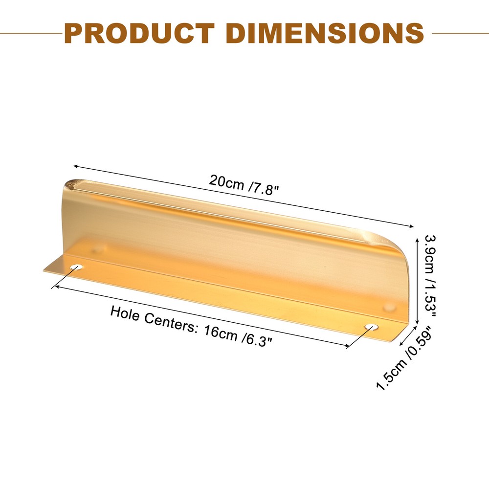 Document Advantage:Made from aluminum material, multi-layer plating, smooth surface, easy to clean, not easy to rust, not easy to fade.The curved design without sharp-edged, does not easily hurt your hand and leaves out your fingerprint.Use a screwdriver to tighten the screw into pre-drill holes and complete installation within seconds.Widely used for kitchen cabinet, bathroom closet, bedroom wardrobe and drawers.Specification:Material: aluminumColor: GoldSize: 20cm(L) x 3.9cm(W) x 1.5cm(H)/7.8inch x 1.53inch x 0.59inchPackage Included: 10Pack Edge Drawer PullsNote: Manual measurement, please allow slight errors on size. The color may exist a slight difference due to different screen displays. 10 Pack Finger Edge Pull Furniture Drawer Handles 6.3" Hole Center Gold Advantage: Made from aluminum material, multi-layer plating, smooth surface, easy to clean, not easy to rust, not easy to fade. The curved design without sharp-edged, does not easily hurt your hand and leaves out your fingerprint. Use a screwdriver to tighten the screw into pre-drill holes and complete installation within seconds. Widely used for kitchen cabinet, bathroom closet, bedroom wardrobe and drawers. Specification : Material: aluminum Color: Gold Size: 20cm(L) x 3.9cm(W) x 1.5cm(H)/7.8inch x 1.53inch x 0.59inch Package Included: 10Pack Edge Drawer Pulls Note: Manual measurement, please allow slight errors on size. The color may exist a slight difference due to different screen displays. Hot Item Payment 1.We accept eBay payment . 2.Payment must be received within 7 business days of auction closing. Shipping 1.We ship to your eBay or Paypal address. Please make sure your eBay and Paypal address is correct before you pay. 2.Items will be shipped within 1-3 business day when we received payment. 3.Delivery time depends on destination and other factors.