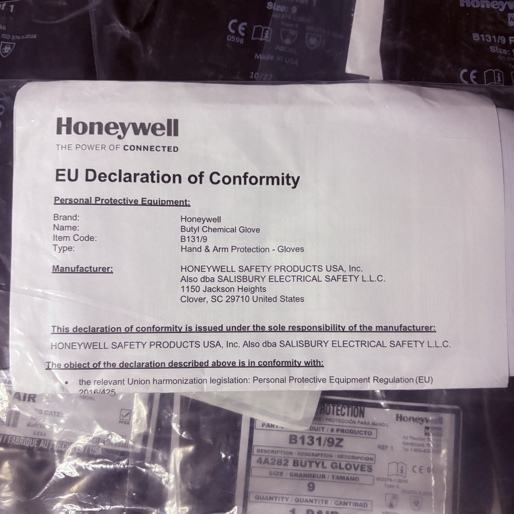 The (10 Pack) Honeywell Butyl Gloves North B131/9 are chemical-resistant work gloves designed for personal protective equipment in industrial settings. Made by North, a brand associated with Honeywell, these gloves are crafted with a durable butyl material that offers excellent protection against chemicals and other hazards. With a size 9 fit and 13 mil thickness, these gloves provide a comfortable and secure fit for extended wear. Ideal for use in various industrial applications, these gloves are a reliable choice for ensuring worker safety and protection.