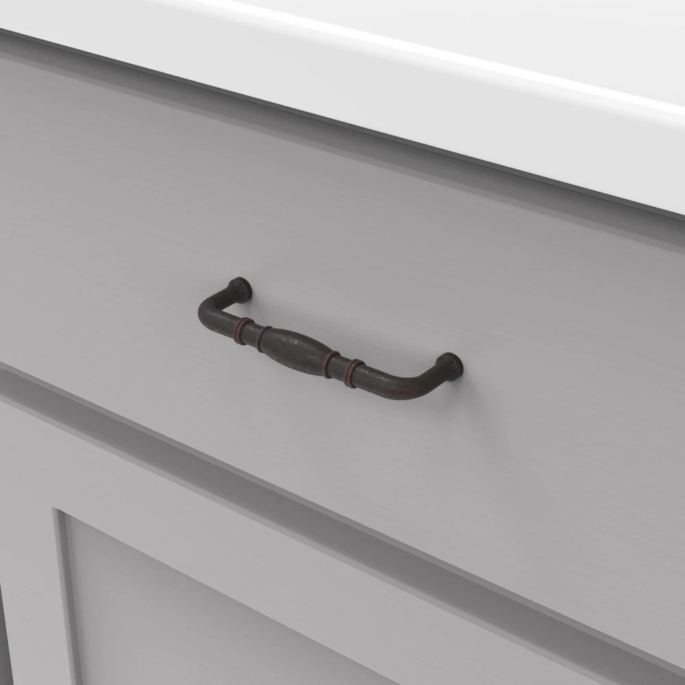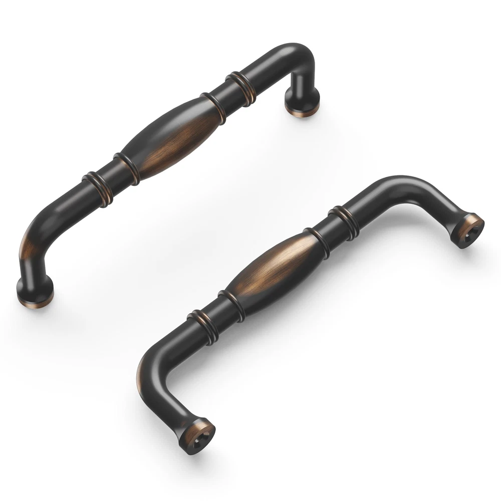 Williamsburg Collection Pull 3-3/4 Inch (96mm) Center to Center Oil-Rubbed Bronze Highlighted Finish (10 Pack) All essential mounting hardware included for an effortless installation. Traditional details elevate the design of this collection This collection is a "go-to" for most spaces Darker finishes make this collection a great option for the "Modern Farmhouse" look. Satin silver finishes like Satin Nickel and Stainless Steel finishes are a timeless classic that update any space.