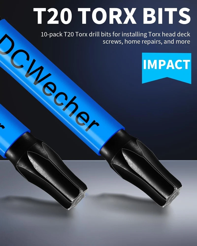 10 Pack T20 Torx Bit 2 Inch Professional-Grade T 20 Torx Screwdriver Bits Tool Size:T20 Torx Bit 10-PCS 2 Inch Item Length: 2 Inches Material: S2 Alloy Steel Drive System: Torx Star Finish Type: Manganese Phosphate T20 STANDARD STAR TORX BIT This 10-Pack of T20 torx bit is 2 inch long, with bit holder. Each drill bit is clearly labeled with its size UPGRADED INDUSTRIAL STRENGTH MATERIAL T20 Torx bit is made of solid S2 steel alloy with a hardness grade of 60 HRC, after exquisite heat treatment process, suitable for standard drill bits or impact drivers Impact t 20 torx bit sufficient magnetic make it easy to lock and remove screws, after repeated use of magnetic does not decay, 1/4" Hex-Shank quick change Impact t-20 torx bit enables deep fit in screw head recess for reduced cam-out and enhanced torque. Effectively avoid breakage 10 Professional-Grade t20 torx bits for installing torx head deck screws, home repairs, furniture assembly, automotive, and various DIY projects. It is an essential addition to your toolbox Return Policy: We offer a 30 day return policy from the receiving date. Please contact us for a Free Return Label. Please use our return label so it will go back to our supplier and we can do a refund or replacement afterwards. Feedback: Your satisfaction is very important to us! If you have any problem with your order, please contact us and we will do our very best to make you satisfied. As long as you are happy with your purchase, please leave a positive feedback for us. We will always leave you a positive feedback in return. If you have any problem with your purchase, please do not leave a negative feedback. Please Contact us ... and your issue will be solved quickly and positively We are a small family-owned business trying to make a living, not a huge company that does not care ... We will ALWAYS do our best for you!