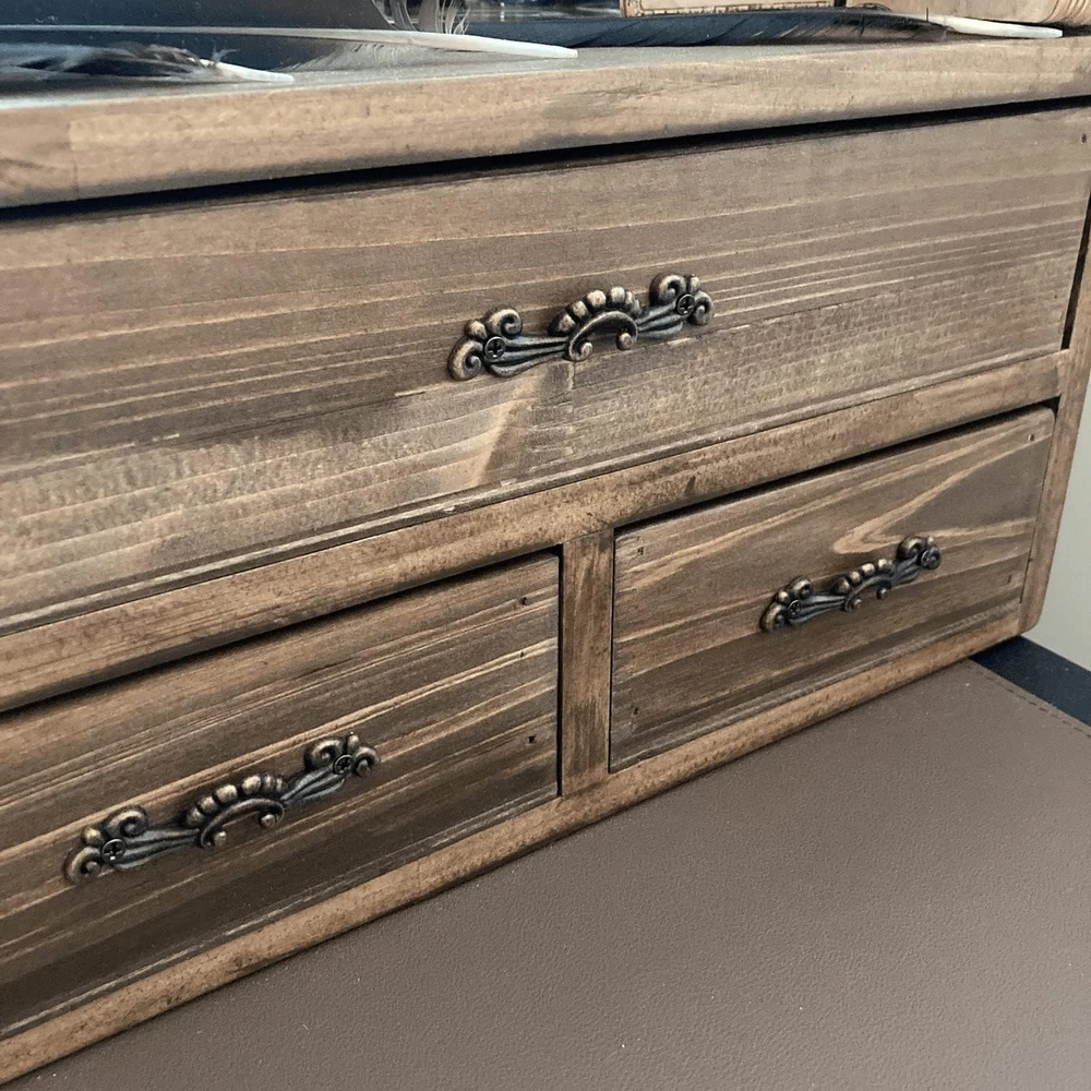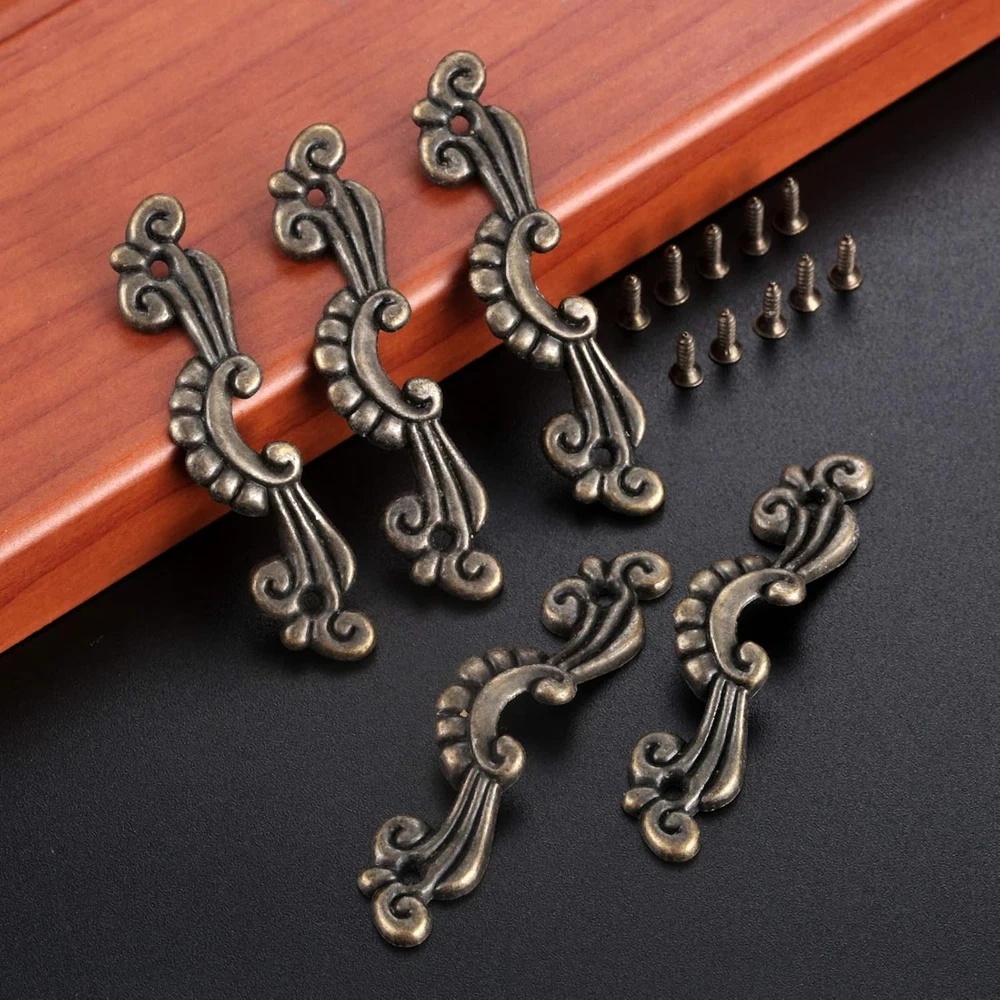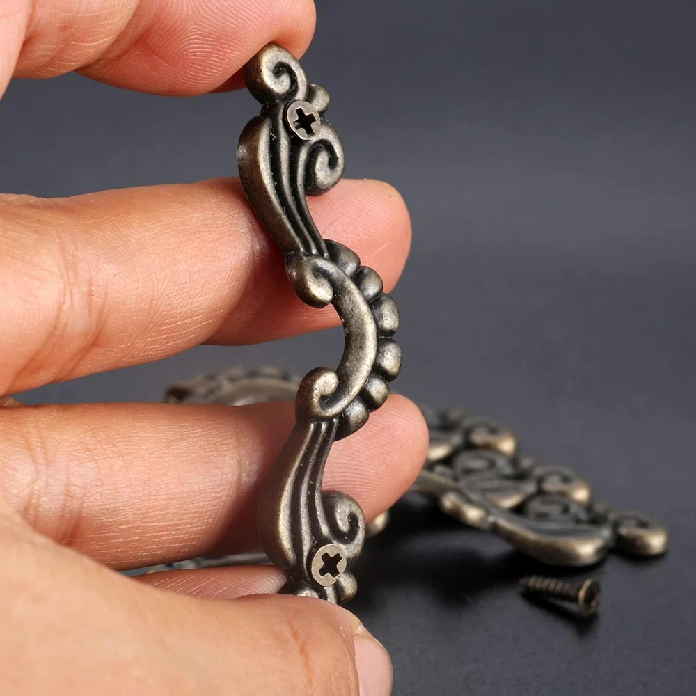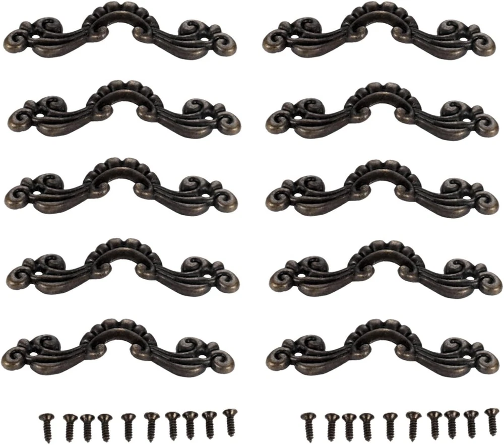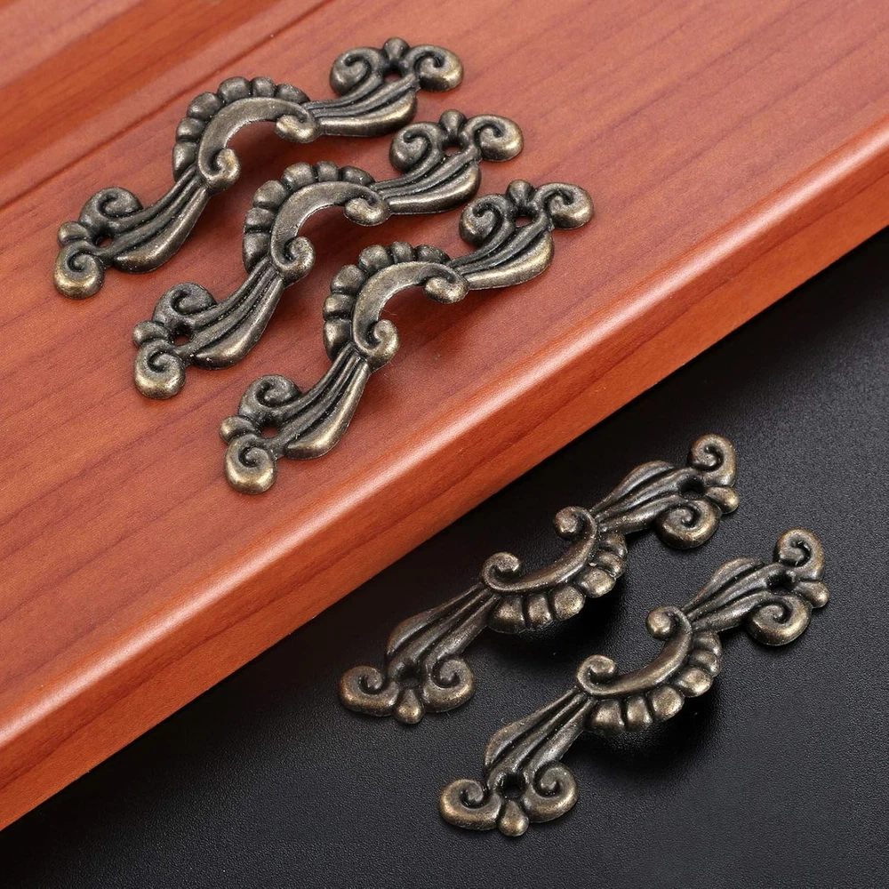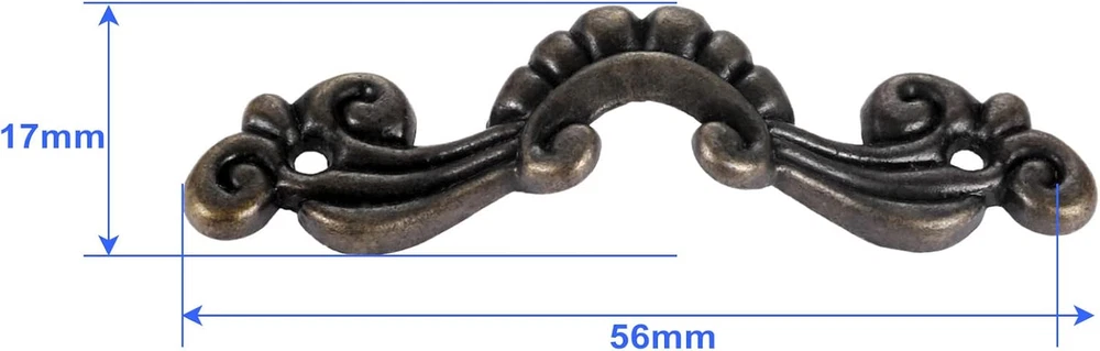✅[SIZE] -- The size of the antique brass cabinet knobs is approx. 56x17mm/2.20" x 0.67", the hole spacing is approx. 40mm/1.57". Please note the size and take the suitability into account. ✅[PREMIUM MATERIAL] -- The drawer pulls and knobs are made of sturdy, long-lasting and rust-proof iron covered with antique brass plating which is prone to support a long service life and not easy to fade. ✅[EASY TO INSTALL] -- The antique cabinet pulls come with mounting screws, easy to install and remove, bringing much convenience in the process of installation. These decorative cabinet handles are perfect replacements that will provide the finishing touch to your decorating. ✅[RETRO STYLE] -- These small jewelry box knobs combine old fashion and good looking into our original ideal, adding a retro flavor to your objects and bringing you an ancient and distinctive experience. ✅ [WIDE APPLICATION] --The bronze knobs for cabinets and drawers are very suitable for kitchen cabinets, door, drawers, DIY crafts, doll houses, small box, wooden boxes, gift boxes, jewelry boxes, hope box, treasure chest, etc, achieving a retro and classic appearance in carpentry objects. Product Description FEATURES SIZE The size of the antique drawer pulls is approx. 56 x 17mm/2.20" x 0.67", the hole distance is approx. 40 mm/1.57". Please note the size and take the suitability into account. WITH MOUNTING SCREWS The knob for cabinets and drawers comes with mounting screws, easy to install and remove, bringing much convenience in the process of installation. HIGH QUALITY These handles for cabinets and drawers are made of sturdy, long-lasting and rust-proof zinc alloy, can be used for a long time. WIDE APPLICATION The antique bronze cabinet knobs are very suitable for barn, cabinets, door, drawers, DIY crafts, doll houses, small box, wooden case boxes, gift boxes, jewelry boxes, bin, wardrobe, vintage jewelry chest, suitcase etc, achieving a retro and classic appearance in carpentry objects. PACKAGE LIST 10pcs x Handle Pulls 20pcs x Screws