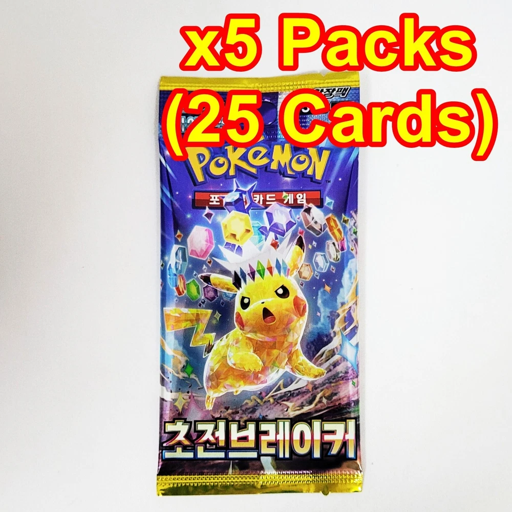 10 Packs Surging Sparks Booster Packs Pokemon Card TCG Factory Scarlet & Violet sv8 sv7a TCG Super Electric Breaker + Paradise Dragona Korean Ver (+2 Free Random Packs) Would you like to see Various Korean Pokémon Cards at once?, If So, Please Click This Text!!! If you want a Lucky Chance to Win Pokémon Cards through an Auction, Click this Text!!! Would you like to see more diverse Super Electric Breaker? If so, Please Click This Text!!! [ Doreen Store Opening 2st Anniversary] ( Limited Event ) + Random Giveaway of 2 Pokemon Card Packs (Service) < Sword & Shield > Eevee Heroes (Evolving Skies) s6a / Blue Sky Stream (Evolving Skies) s7R / Fusion Arts ( Fusion Strike) s8 / Star Birth (Brilliant Stars) s9 / Lost Abyss ( Lost Origin) s11 / Paradigm Trigger (Silver Tempest) s12 Vstar Universe ( Crown Zenith) s12a < Scarlet & Violet > Scarlet ex ( Scarlet & Violet) sv1S / Violet ex ( Scarlet & Violet) sv1V / Clay Burst (Paldea Evolved) sv2D / Snow Hazard (Paldea Evolved) sv2P / Pokemon 151 sv2a / Ruler of Black Flame (Obsidian Flames) sv3 / Raging Surf sv3a / Ancient Roar ( Paradox Rift) sv4K Future Flash ( Paradox Rift) sv4M / Shiny Treasure ex sv4a / Wild Force (Temporal Forces) sv5K / Cyber Judge (Temporal Forces) sv5M Crimson Haze ( Twilight Masquerade ) sv5a / Mask of Change ( Twilight Masquerade) sv6 Night Wanderer ( Shrouded Fable) sv6a / Stellar Miracle ( Stellar Crown) sv7 Etc... (Randomly provided type and quantity) EVENT Description Product Description 10 Packs Surging Sparks Booster Packs Pokemon Card Sealed Korean (+2 Free Packs) < Product Composition > Super Electric Breaker 5 Packs (25 Cards) + Paradise Dragona 5 Packs (25 Cards) + Free 2 Random Packs Please read the event-related picture well !!! All Pokemon cards are 100% Korean official Authentic Factory Sealed Model Name: Pokemon Card Game Manufacturer Name: Pokemon Korea Co., Ltd. Country of manufacture: Korea If you want to see different Pokemon cards at once, please click this text! Important Points Seller Comment Copyright © Doreen Track Page Views With Auctiva's Counter
