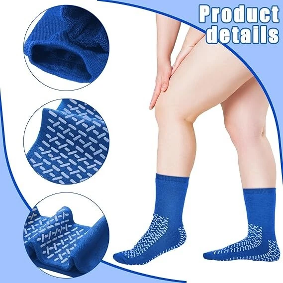 10 Pairs 3XL Hospital Socks Double Sided Tread Non Slip Socks Large Wide Grip Color: Blue Fabric type: Polyester Care instructions: Hand Wash Only OriginImported Package Content: our special package includes 10 pairs of sock slippers men women, ensuring that you always have a fresh pair available; The large size and classic color ensure they're suitable for various users and styles, an ideal fusion of function and convenience Comfort with Breathable Material: experiencing comfort with our hospital socks men women, available in XXL size; These socks are designed with a sweat absorption technique to ensure your feet remain dry, cool, and comfortable throughout the day; Crafted from quality polyester, they offer enhanced durability coupled with exceptional breathability Ideal for Individuals: diabetic patients or those dealing with swollen feet or edema can find relief with the soft, breathable material; The structure of non skid slippers for women men aids in congestion alleviation, ensuring a convenient and comfortable experience for users dealing with such ailments Considerable Design: the feature of our hospital grip socks is their grip; The non slip tread provides ideal grip across many surfaces, increasing safety during physical activities or hospital stays; Don't compromise your safety, with stretch and non constricting seams the socks can also fit a swollen leg comfortably; Choosing our socks for enhanced stability and support Versatility in Design: our hospital gripper socks aren't just for people with swollen feet, edema, or diabetes, they're much more versatile; Whether you're practicing yoga or Pilates, spending time in a hospital, or simply require enhanced grip for safety at home, these socks provide ideal functionality; The non slip tread design contributes to safe mobility, making them ideal for various activities Return Policy: We offer a 30 day return policy from the receiving date. Please contact us for a Free Return Label. Please use our return label so it will go back to our supplier and we can do a refund or replacement afterwards. Feedback: Your satisfaction is very important to us! If you have any problem with your order, please contact us and we will do our very best to make you satisfied. As long as you are happy with your purchase, please leave a positive feedback for us. We will always leave you a positive feedback in return. If you have any problem with your purchase, please do not leave a negative feedback. Please Contact us ... and your issue will be solved quickly and positively We are a small family-owned business trying to make a living, not a huge company that does not care ... We will ALWAYS do our best for you!