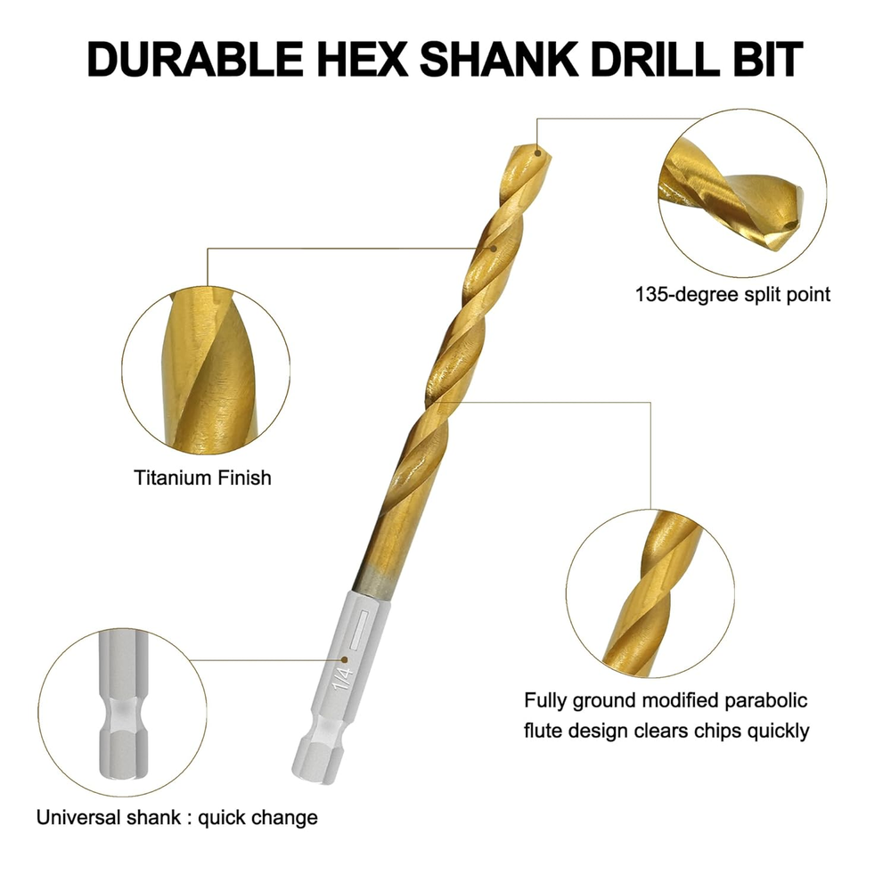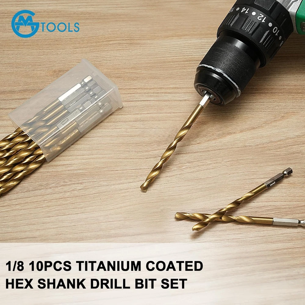 Store New Arrivals Add to Favorite View Feedback Contact 10 Pcs 1/8" Titanium Coated Twist Hex Shank Drill Bit Set HSS Impact Drill Bits Description Style 1/8"-10PCS Material High Speed Steel (HSS) Cutting Angle String 135 Degrees Shank Type Hex Cutting Diameter 3.18 Millimeters Finish Type Titanium Package Dimensions 4.8 x 1.89 x 1.14 inches; 4.16 ounces HSS Titanium Coating: GMTOOLS hex shank drill bits with titanium coated high speed steel, increasing wear resistance and durability. The cutting edge is hardened and honed for sharpness, suited for wood, aluminum alloy, stainless steel, plastic, etc. Flutes Form and 135°Split Point: 135° Split Point makes drilling easy with less pressure and prevents drill bits from walking. Double U shape flutes clear chips effectively, decreasing friction and heat for a faster, cooler drilling process. Quick Change: 1/4" hex shank compatible with power screwdrivers, impact drivers, and other tools that accept 1/4" hex shanks, eliminates the frustration of shank spinning in chuck, easily locking into a chuck without slipping and falling off. Size: 10Pcs 1/8" Hex Shank Titanium Drill Bits, storage in a box with size index. Quality Commitment: If for any reason you are not satisfied with your purchase, please contact us. We provide 30-day money back. 100% Satisfaction Guarantee for risk-free shopping! Product description Titanium Twist Drill Bit Set Material: High Speed Steel, Alloy Steel Angle Point: 135 Degree Finish Type: Titanium Shank Type: Hex Shank SIZE: 1/8"(3.18 mm) 10PCS TIPS: Keep the drill bits vertical to the object when drilling. When using bits with a power drill, it's recommended to use it with low speed and drilling pressure. Pay attention to the heat, add water or coolant if necessary. 1/4 inch hex shank fits into all power tools more easily and securely, specially for locking into quick change chuck. Titanium coating adds lubricity and protection from abrasion. Increases drill bit life-time. The 135 degree split point tip and twist design helps with cutting speed while providing easy self centering without walking. ABOUT US We offer the best prices around on high quality products. Our E-store includes media such as books, movies, music and games while offering electronics, toys, sporting apparel, clothing, tools, general home, garden items and more. SHIPPING We are always working hard to ensure your package arrives as soon as possible. Please understand that some factors like weather, high postal traffic, and the performance of shipping companies are outside of our control. We offer free shipping to the lower 48 states and ship within 2 business days of payment, usually sooner. We do not accept P.O. Boxes. Please provide a physical address. For shipping outside of the continental USA, we only use eBay's Global Shipping Program.The item is shipped to KY and then sent to the rest of the world. International customers are responsible for all duties and taxes. Continue to check out in order to calculate costs for shipping the item to your country. Messages regarding eBay's Global Shipping Program MUST be directed at eBay EXCLUSIVELY. RETURNS We offer a 30-Day Return Policy on items which you are not completely satisfied with. You have the option for a full-refund or an exchange of the item. No returns are available on items shipped outside of the USA. PAYMENT We accept PayPal. CONTACT US This page content is yet to come Please ad us to your favorite seller and visit again later Thank You CUSTOMER SATISFACTION We try our very best to make sure every customer is completely satisfied. If there's a problem, message us! We're happy to help. WE ACCEPT Copyright © 2021 AutoDS. | All Rights Reserved