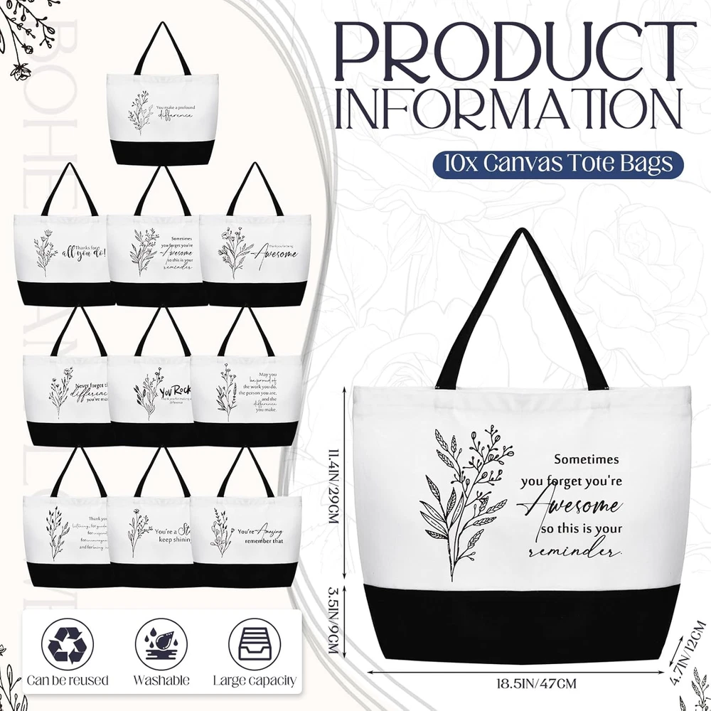 Menu Other Items Feedbacks About Us Contact Us Add To Favorites 10 Pcs Christmas Teacher Appreciation Gift Assistant Bag Inspirational Tote Bag with Zipper Thank You Gift for Women Employee Item Specification Style Fresh Style Dimensions Shipping Returns Additional Info Product Dimensions: (n/a) Fast shipping is very important for us. Our standard shipping service is FREE. Your order will be shipped within 1-3 business days upon full payment received. Most items are delivered within 3-5 business days, however, please allow 3-10 business days. We are shipping only to USA. We only ship to the confirmed Paypal address. We reserve the right to cancel any order for any reason at any time. We are not responsible for undeliverable addresses. We offer a 30 day return policy from checkout winning date. Your satisfaction is guaranteed! If for any reason you are unhappy with your item, just return it within 30 days for a full refund, minus shipping cost. Please contact us prior to initiating a return so that we can issue you a refund authorization. Items defective upon receipt must be packaged in their retail packaging as if new and returned with a detailed description of the problem. Return shipping fees are not refundable. We reserve the right to decline any returns if the above guidelines are not followed. All of our items, unless otherwise stated, will only run on 120 volts. Please check to make sure your country complies with these specifications. If you have a problem or question regarding your transaction please contact us before leaving any type of feedback. We will work with you to resolve any problem you may have.