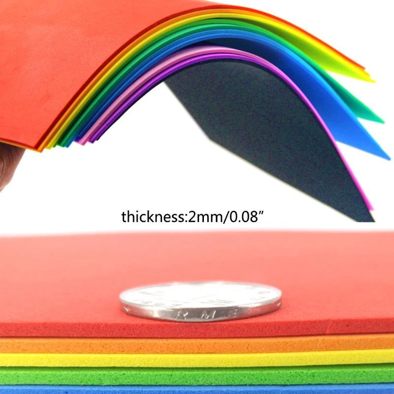 10 Pcs Exquisite Colorful Foam Papers Assorted Color Crafting Sponge Paper and high Features: 1. Not easily deformed. 2. for Ideal material for handmade home decoration, kindergarten 3. Great at enhancing operational ability and color cognition of kids. Sponge Foam Paper only, other accessories in the picture is not included. Specification: Polyester Type: Sponge Foam Paper Color: 10Different Colors Shown as pictures Thickness: 2mm Size: 200 x 300mm(7.87 x 11.81in) Quantity: 1Set(10Pcs/Set) Note: 1. Please allow 0-1cm error due to manual measurement. pls make sure you do not mind before you bid. 2. Due to the difference between different monitors, the picture may not reflect the actual color of the item. Thank you! 3. Smell of printing is inevitable, and hence please scatter the smell by airing before using. Package includes: 1Set(10Pcs/Set) x Sponge Foam Paper