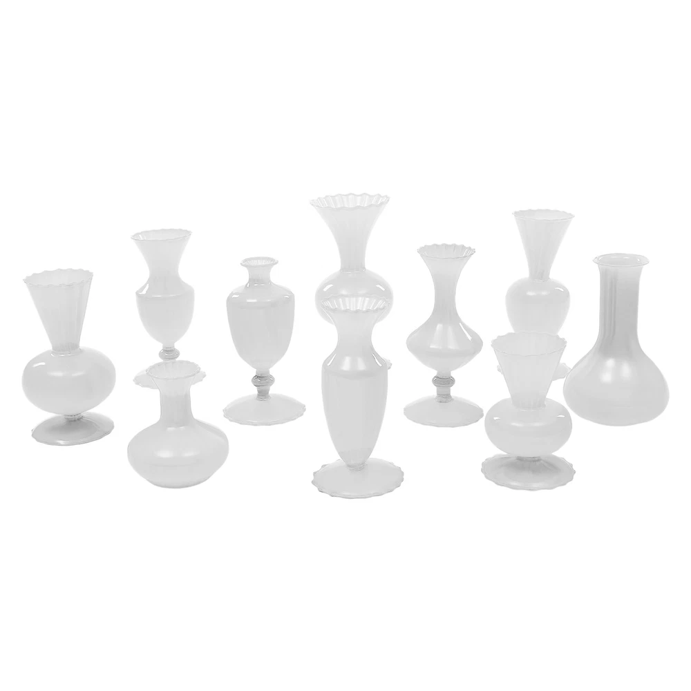 Specification Color: White Style: Modern Material: Glass Assembly Required: No Mount Type: Free Standing Number of Items: 10 Product Size(D*H): 11*9.5cm/4.33*3.74in, 9*17cm/3.54*6.69in, 9*16.5cm/3.54*6.5in, 9*17.5cm/3.54*6.89in, 9*17.5cm/3.54*6.89in, 9*7cm/3.54*2.76in, 12*18.5cm/4.72*7.28in, 9*19cm/3.54*7.48in, 9.3*20cm/3.66*7.87in, 10*22cm/3.94*8.66in Net Weight: 2kg/4.41lbs Gross Weight: 2.3kg/5.07lbs Package Size: 55*45*15.5cm/21.65*17.72*6.1in Package Included 10* Glass Vases 10 Pcs Glass Bud Vase Set Decorative?Small?Vases Home Centerpieces Decor White Description Weddings, graduations, birthdays, etc. are all memorable events in our lives that will become our precious treasures. With this glass vases set, your wedding and other important events will be even more wonderful. Our vases are made of premium glass, so they can be used for a long time and accompany you through various stages. 10 different styles in sufficient quantity can meet your home decorating needs, adding a touch of elegance and beauty to your home. Key Features Build to Last: High-quality glass makes the product durable and solid, so it remains beautiful and practical for a longer time. Strong Stability: The solid material, reasonable structure, and stable base provide this item with a strong bearing capacity, so you can use it safely without worrying about the fracture. Diverse Styles: The 10 different shapes, sizes, and styles enrich your visual experience, create a personalized background, add brightness to a dull event, and become good home decoration. Wherever it is placed, it is a beautiful scenery. Nice Decorations: You can place this product at the top of the booth as an excellent decoration for special days, creating an elegant atmosphere, especially for weddings. You can also put it on the table to relax your mood. Even if it hasn’t artificial flowers on it, it is still a very elegant decoration! High Cost-effective: 10 Pcs allow you to use different items, such as flowers, artificial flowers, and vines, on other occasions to decorate them freely and repeatedly, promoting the unity of style and fully meeting your needs. Labor-saving Cleaning: The smooth surface and simple structure make it convenient for you to clean with a wet towel and water. Easy to Carry and Store: Its small size and lightweight( 4.41 lbs ) make it easy for you to store and carry them anywhere. Ideal Gift: With an attractive appearance, this product is used as a gift for family, friends, and lovers to make their home more atmospheric and festivals more meaningful. Protective Package: To prevent the product from being damaged and bumped during transportation, we packed it with foam and cartons to protect your products to the maximum extent possible. Details Round Corners: Compared with traditional square corners, an arc design can better care for your skin. Flared Mouth: The flared mouth of the vase is not only aesthetically pleasing but also makes it easier for you to insert flowers, artificial flowers, and other decorations. Application Match with artificial flowers and other items, this product can be used in homes, restaurants, terraces, coffee shops, hotels, balconies, bars, clubs, Spa, candlelight dinners, holiday dinners, weddings, the background decoration of the studio, as well as any other special activities you would like to decorate. Specification Color: White Style: Modern Material: Glass Assembly Required: No Mount Type: Free Standing Number of Items: 10 Product Size(D*H): 11*9.5cm/4.33*3.74in, 9*17cm/3.54*6.69in, 9*16.5cm/3.54*6.5in, 9*17.5cm/3.54*6.89in, 9*17.5cm/3.54*6.89in, 9*7cm/3.54*2.76in, 12*18.5cm/4.72*7.28in, 9*19cm/3.54*7.48in, 9.3*20cm/3.66*7.87in, 10*22cm/3.94*8.66in Net Weight: 2kg/4.41lbs Gross Weight: 2.3kg/5.07lbs Package Size: 55*45*15.5cm/21.65*17.72*6.1in Package Included 10* Glass Vases Notes Please note that flowers and other decorations are not included. Please use a soft cloth to clean and dry it. Please do not use harsh chemicals or abrasives. It is better to add some rocks or floral foam to the inside to make the item more stable. For better results, we recommend using a small bouquet. Please pay attention to the size details, it may be smaller than you expect. Please check the size of our vases before purchasing a bouquet to prevent buying a larger or smaller bouquet. Please allow the slight color difference caused by the shooting light and 1-3 cm error due to manual measurement, and make sure you do not mind before ordering. Payment Delivery details Terms of sales About us Contact us Payment We accept ebay payment 。 Fees such as import duties, taxes are not included in the item price or shipping costs. These charges are the buyer's responsibility. Delivery details Shipping: 2-9 working days to: USA Terms of sales We maintain high standards of excellence and strive for hundred percent customer satisfaction. Feedback is very important to us. We hope that you contact us immediately before you give neutral or negative feedback, so that we can address your concerns. It is impossible to address issues if we do not know about them! About us Your satis faction is our ultimate goal. We work hard to earn your trust and future business. Our certified technicians have tested each item before shipping. The unit comes with 1 year limited warranty on all manufacturing defects. a) If you receive a defective item, you may return it or ask for a discount. Please contact us within 14 days after you receive the package. b) What you returned must be intact and in its original packaging as re? u. Customer is responsible for shipping costs of the returned item. c) We will cover the cost of shipping back t with the shipping rate indicated in the registration page. We will send you a new unit or refund the full payment you paid. Thank you. Contact us Business Hour Business Hour: Monday To Friday: 8:30 AM to 5:00 PM (Beijing China time) Due to time zones, our reply to your questions may not be immediately. But withi