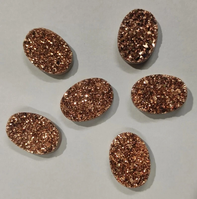 Welcome To Gempires This is a set of 10 oval-shaped Titanium Agate Druzy Quartz gemstones with a Rose Gold color. The gems have an excellent cut grade and are 100% natural with eye-clean clarity. They are not treated or enhanced and come with certification for authenticity. Handmade in India, these drusy gemstones are perfect for wholesale purchase for use in jewelry-making or other creative projects. 10 Pcs Natural Oval Titanium Agate Druzy Quartz Unique Drusy Earrings Making Lot Check My Other Titanium Agate Druzy Quartz Listings : Click Here Note: For Custom / Bulk Order, Please contact on Ebay Message Service. QUALITY ASSURANCE:- The photo may not give you the actual size, please refer to the item description for size details. Our product Images are original. We dont use Photoshop for any editing. We always do our best to display an actual image of the gemstone which is to be delivered to our customers. We check all our items and ensure the best quality standards. The item weight may vary 5% (+/-) at maximum and size may vary .10 cents (+/-) as per the gemstone standard. Return Policy:- Any reason, if you are not satisfied with our product, you may return item within 14 days from the date of product delivered. The Item must be returned in its original condition. Return shipping will be paid by buyer. Shipping Policy: At Gempires, we offer two shipping options for our customers: Standard Shipping: 13-15 Days Express Shipping: 5-7 Days Standard Shipping: Our standard shipping option takes approximately 13-15 days for delivery. Please note that this is an estimated time frame and may vary depending on your location and any unforeseen circumstances. We strive to ensure that your order is processed and shipped as quickly as possible. Express Shipping: If you need your order delivered quickly, we offer an express shipping option that takes approximately 5-7 days for delivery. This option is available at an additional cost, which will be displayed during the checkout process. Please note that this time frame is an estimated delivery time and may vary depending on your location and any unforeseen circumstances. Handling Time All orders are processed and shipped within 1-2 business days after payment has been received. Once your order has been shipped, you will receive a tracking number via Ebay notifications, which you can use to track your package. Custom Duty Note Please note that we are not responsible for any customs or import duties that may be charged once the package reaches your country. These charges are the responsibility of the buyer and are not included in our shipping fees. We take great care in packaging our products to ensure that they arrive at your doorstep in pristine condition. However, if your package arrives damaged or you have any other concerns about your order, please don't hesitate to contact us. We will do our best to resolve any issues and ensure that you are satisfied with your purchase. Feedback Policy:- At Gempires, we value your feedback and strive to provide the best customer experience possible. We welcome your reviews and appreciate your time in sharing your thoughts about your purchase with us. If you are satisfied with your purchase and our service, we would love to hear about it. Your positive feedback can help other buyers make an informed decision about our products and services. If for any reason you are not completely satisfied with your purchase or our service, please reach out to us before leaving a negative review. We are committed to resolving any issues that may arise and ensuring your satisfaction. Thank you for choosing Gempires for your natural gemstone needs. Your feedback is valuable to us, and we look forward to providing you with exceptional service in the future. Best Regards Gempires