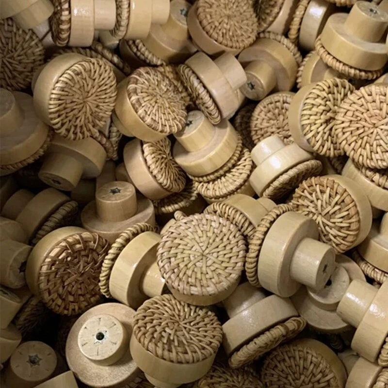 10 Pcs Rattan Cabinet Drawer Handle Small Cupboard Pulls Furniture Decor Handle
