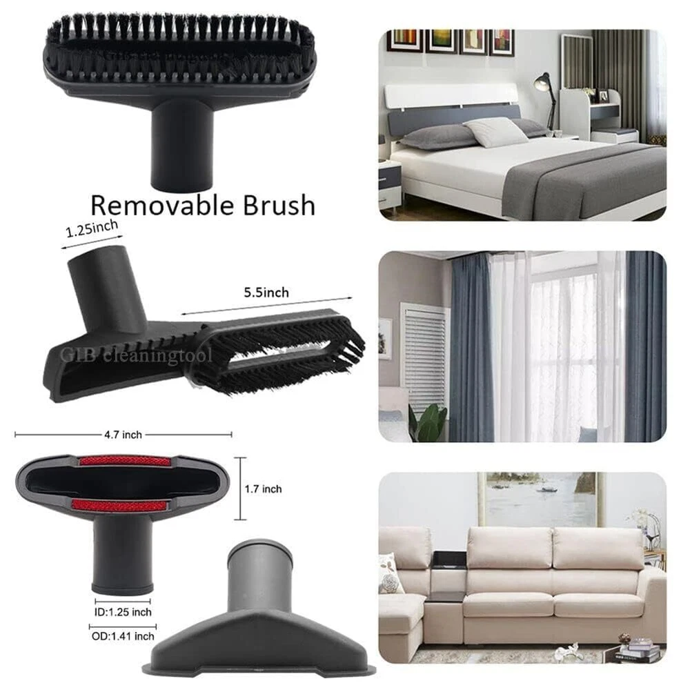 Vacuum attachments are suitable for Most Vaccum (not all) with 1 7/8 inch (47.5mm), 1 3/8 inch (35mm), 1 1/4 inch(32mm) and 1 inch(25.4mm) inner diameter. Not Fit For 2 1/4 inch,2 1/2 inner diameter vacuum cleaner and vacuum attachments. The 3 vacuum extension wand and the vacuum attachements are held together by friction, and the small end of our vacuum extension wand can also be attached to our crevice tool, upholstery tool attachment and brush. And the length of the extension wand is 14.6". So great tool to help cleaning high and low places. The vacuum attachements set includes 5 layers vacuum attachment adapter,5 vacuum extension wand, 1 1/4 inch(1.25") horse hair vacuum attachment, 1 1/4 inch crevice tool, 1 1/4 inch flexible crevice tool, 1 1/4 inch upholstery tool attachment, 1 1/4 inch utility nozzle with removable plastic brush, 1 1/4 inch brush & nozzle combination tool. Universal Vacuum attachments - with Vac vaccum with 1 7/8",1 3/8", 1 1/4", 1" diameter accessories. 5 Layer Universal Vacuum Adapter - Outer diameter of the 5 layers adapter is 23mm, 27mm, 32mm, 35mm, 40mm, 50mm. Suitable for vac attachment with 1"(25.4mm), 1 1/4'' (32mm), 1 3/8'' (35mm), 1 1/2''(39mm), 1 7/8"(49mm) inner diameter. The vacuum adapter can be easily cut into 5 size connector for your need. 1 1/4 Vacuum Attachments & Brushes - Horse hair vacuum attachment is great for hard surfaces such as counter tops, dust tables, vertical blinds, air and heating vents etc. Removable Utility Nozzle, Brush & Nozzle combination Tool and Upholstery Tool Brush are suitable for soft or uneven surfaces without damaging the object such as curtains, sofas, lighting equipment, pet hair, etc. Flexible Crevice Tool - Flat head suction design is effective for small fine particles and dust in narrow gaps and small corner such as corners of sofas, dryer vent,keyboard, car etc. Make your cleaning work more convenience. Vacuum Extension Wand - The outside diameter of the small end is 1.22"(31mm), so the inner diameter of the vacuum attachments you want to connect to the small end should be 1.25"(32mm). The inner diameter of the large end is 1.25" (32mm), the outer diameter is about 1.34" (34mm). So the outside diameter of the vacuum attachments you want to attached with the large end should be 1.22" (31mm) or 1.21 (30.7mm), inner diameter should be 1.37"(35mm).
