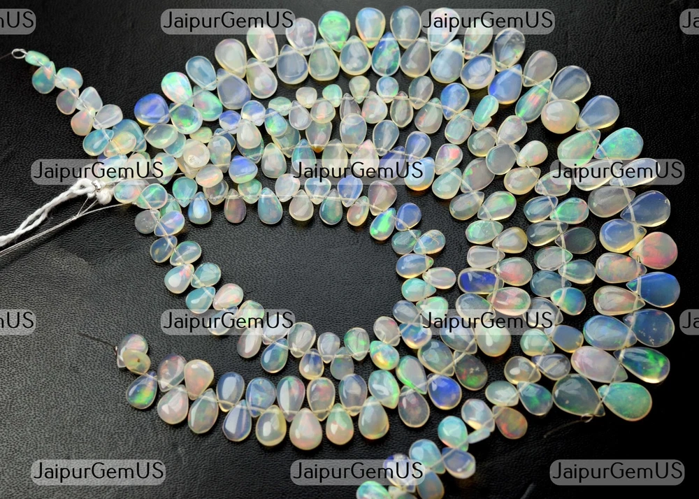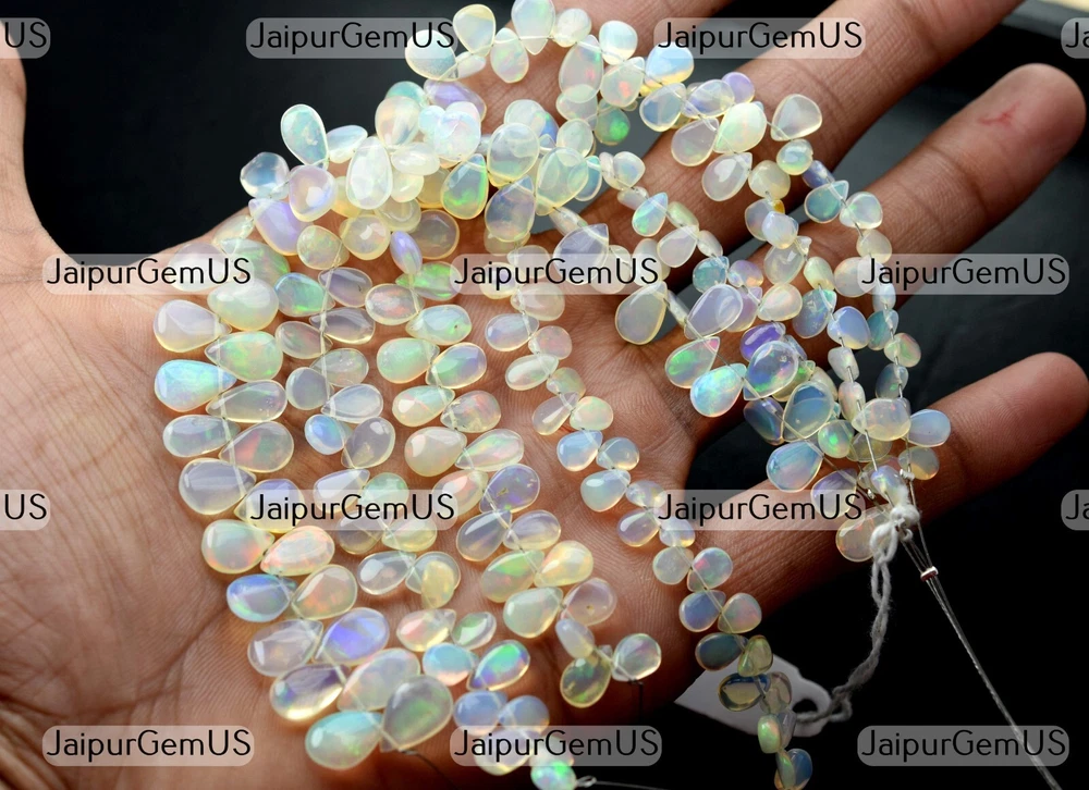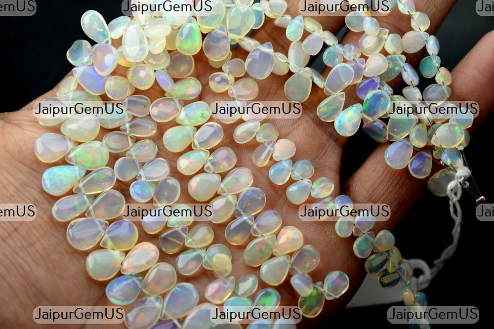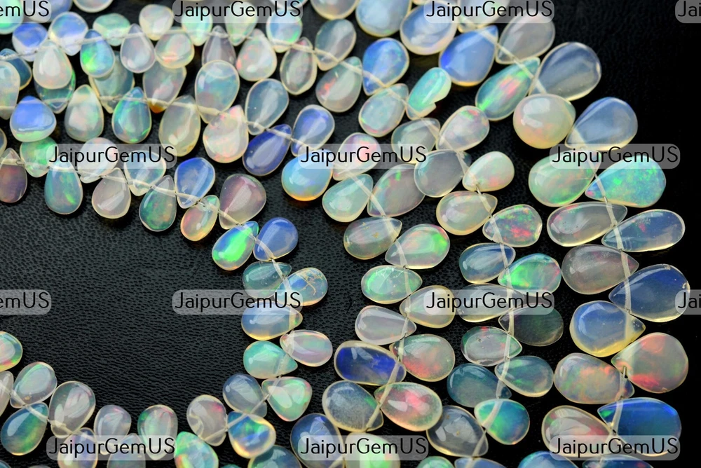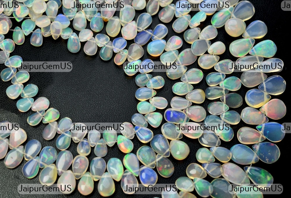 10 Pieces Beads, Super Finest Quality, 100% Natural Ethiopian Opal Gemstones Smooth Pear Shape Beads, Size-7.00-9.00mm Approx (Opal-109) . Pieces ------------10 Pieces Beads Size----------------7.00-9.00 mm Approx. Shape-------------Pear Shape. Brand--------------JaipurGemUs Cut Grade---------AAA+ 100% Natural Ethiopian Opal Gemstones . Super Finest Quality