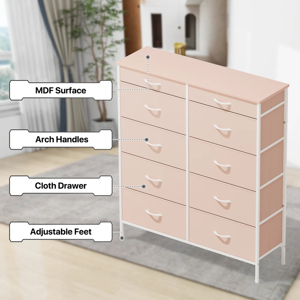 Monibloom about us all items feedback new arrival ending soon contact us ELEGANCE & MINIMALISM 10 Pink Drawer Double Dresser Fabric Chest of Drawers Clothing Storage Organizer item specification Brand: MoNiBloom Type: Chests of Drawers Drawer Material: Fabric Mounting: Free Standing Overall Size: (L)39.5" (W)12.0" (H)43.5" Number Of Drawers: 10 Tipover Restraint Device : Yes item description This 10-drawers dresser comes with 2 underwear drawers, 2 partition drawers, and 6 large drawers. It can be classified to store your clothes, accessories, underwear, and more, helping you quickly find the items you need. It is a great assistant for storing your home items. Sturdy metal frame with an X-shaped support rod at the back ensures the stability of the drawer cabinet, making it an excellent choice for increasing storage space in small spaces such as bedrooms, living rooms, closets, hallways, etc. Spacious 10-Drawer Design - This dresser offers ample storage for daily essentials, with divided drawers for small items like ties and underwear, and larger drawers for clothes, books, and more. The MDF tabletops provide space for lamps, photo frames, and decor. Well-built Construction - This tall dresser features a solid metal frame with a unique X-shaped rod design , hard MDF top, and breathable non-woven fabric drawer. It also includes a child-safe design with anti-tilt features for added safety and peace of mind. Convenient Design - Easy pull handles help open and close the drawers smoothly; 4 adjustable feet can protect your floor from scratches. Stylish and Versatile - Available in four colors to complement any home decor, this chest of drawers can enhance various spaces such as bedrooms, living rooms, closets, dorms, children's rooms, offices, nurseries, and hallways. It functions not only as a storage dresser but also as a TV stand or media console. Simple Assembly - All parts and accessories are included in the packaging for easy installation of the fabric drawer dresser within 30 minutes. Securing the dresser to the wall is recommended. For any questions, feel free to contact us for prompt assistance. Overall dimensions: 39.5" L x 12" W x 43.5" H. more from monibloom TV Stand BROWN Chests of Drawers FABRIC Chests of Drawers FABRIC Nightstand FABRIC Chests of Drawers FABRIC Nightstand FABRIC Chests of Drawers FABRIC All Items in the same category material Professional quality control ensure our products meet your satisfaction green Bamboo crops sequester more carbon dioxide than an equivalent stand of trees, which helps reduce CO2 and increase oxygen in the atmosphere. performance 30 Days Money Back Guarantee. Get the item you ordered, or your money back. Need Help? Need an exchange/return or recommendation on a product? Send us a Message Our friendly customer service team are committed to providing exceptional quality service. About us Monibloom specialized all kind of great products. Our number one goal is to provide the best online shopping experience for our customers. We offers free shipping with free return on orders purchased within the 48 US States, excluding PO Box, Military APO/FPO, Alaska, Guam, Hawaii, Puerto Rico, and Virgin Islands. Subscribe to our newsletter Subscribe Copyright © 2024 MoNiBloom . All rights reserved.