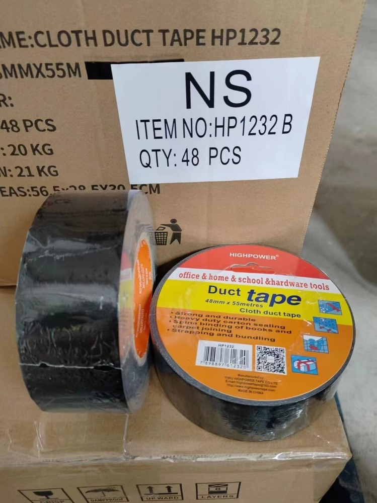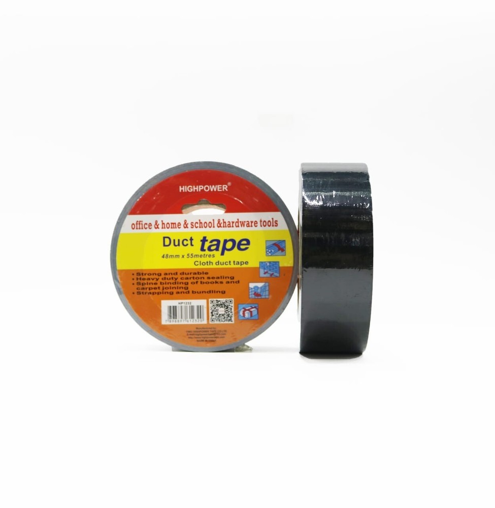 Utility Grade Duct Tape Economy grade polyethylene-coated cloth with a natural rubber adhesive. Good tensile strength, hand tearable, excellent moisture resistance. Conforms well to irregular surfaces. Used for bundling, heavy carton sealing, general maintenance, pipe wrapping, carpet fixing, AC duct seaming and joint sealing. 3" neutral core. Physical Properties: Total Thickness: 7.2 Mils Adhesion to Steel: 44 oz/in Tensile Strength: 31lbs/ in Elongation: 19% Temperature Range: -4 F to 140 F AVAILABLE IN LARGE QUANTITY Size : 48MM (2 in) X 55MM (60 Yards) Quantity : 10 Rolls Available : Gray & Black Color
